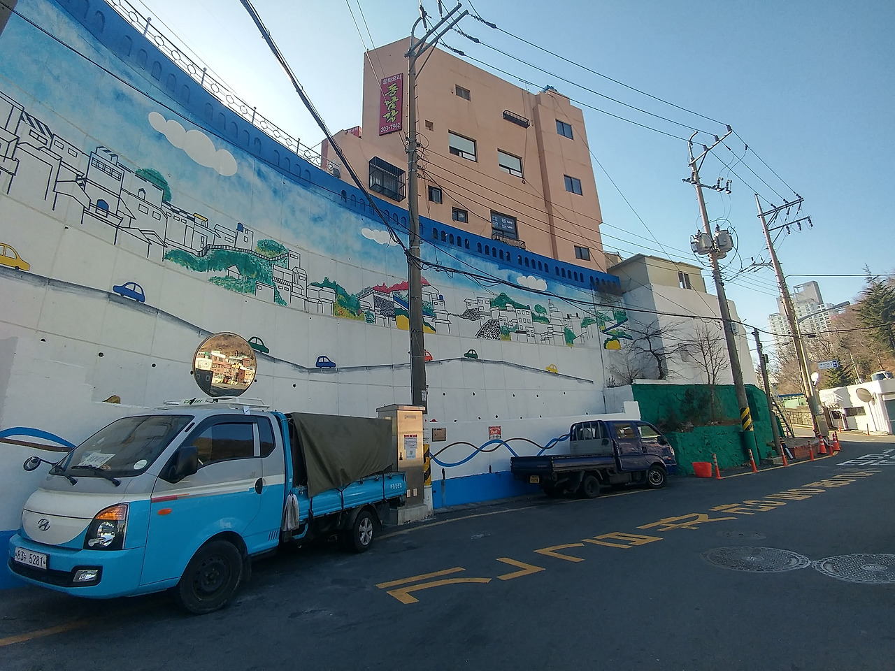 - 그냥 마을 입구에 내려드릴게요. 벽화가 하도 많아서요..