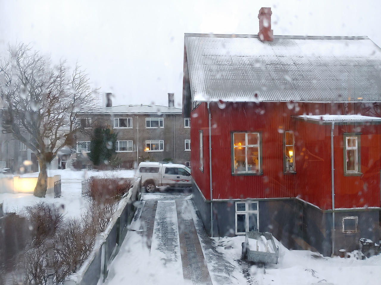 아침에 내다본 창밖으로 눈까지 내린다.