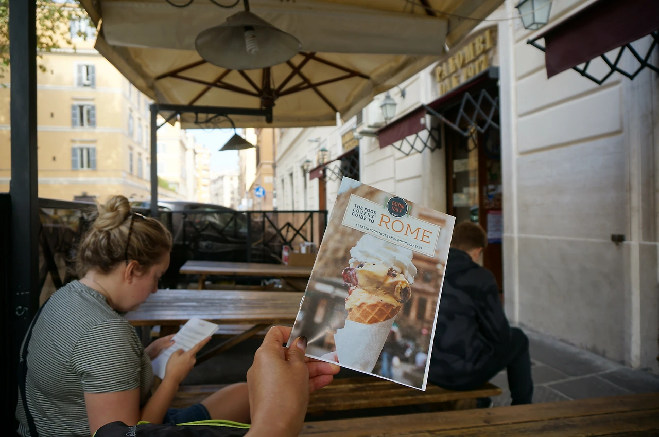 여섯 번째 디저트로 먹는 젤라토. 이 집 젤라토는 모두 저 젊은 남자 주인이 이곳에서 직접 수제로 만든 거라고 한다. 이태리 사람은 자급자족의 대가인 걸까? 뭐든지 직접 만들지만 동네 사람들이 맛을 알아주면 동네에서 성공한 거고 그들이 안 오면 맛을 인정받을 때까지 장인정신을 발휘하여 개발하고 공부해서 주민들과 함께 먹고 함께 즐기면서 정통맛을 찾아가는 정말 입으로 들어가는 모든 음식에 로마의 전통과 현대인의 입맛에 맞도록 조화를 생각하는 것 같다. 그래서 로마는 이런 골목 음식이 더 유명한 걸까? 다들 집에서 먹듯이 만들어서 제공하니 가내수공업 내지는 핸드메이드처럼 동네 가게들의 음식에서 주인의 정성이 고스란히 느껴진다. 그렇다면 우리가 알고 있는 이태리 피자들은 공장에서 만들어서 해외로 수출되어 다른 제품라인 인건가?