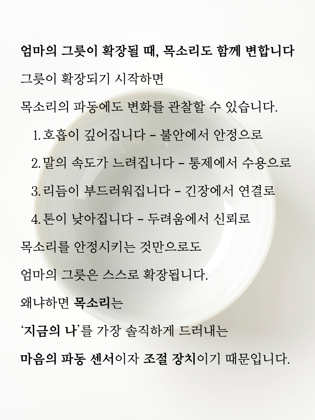 목소리를 안정시키는 것만으로도 엄마의 그릇은 스스로 확장됩니다.