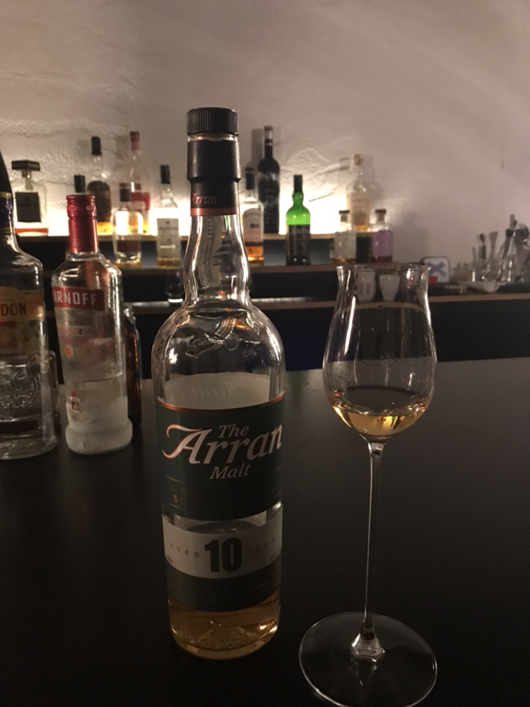 "이 친구는 위스키를 처음 마시는 거라 좀 소프트하고 덜 스모키 한 걸로 주셨으면 하는데요, 아란 괜찮을까요."