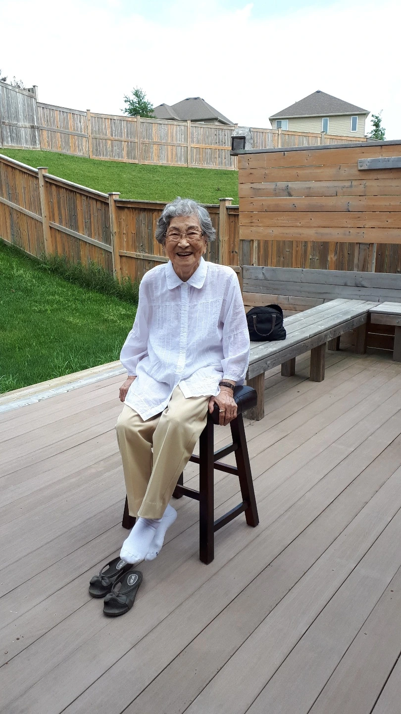 동생네 데크에서 즐거워하시는 엄마