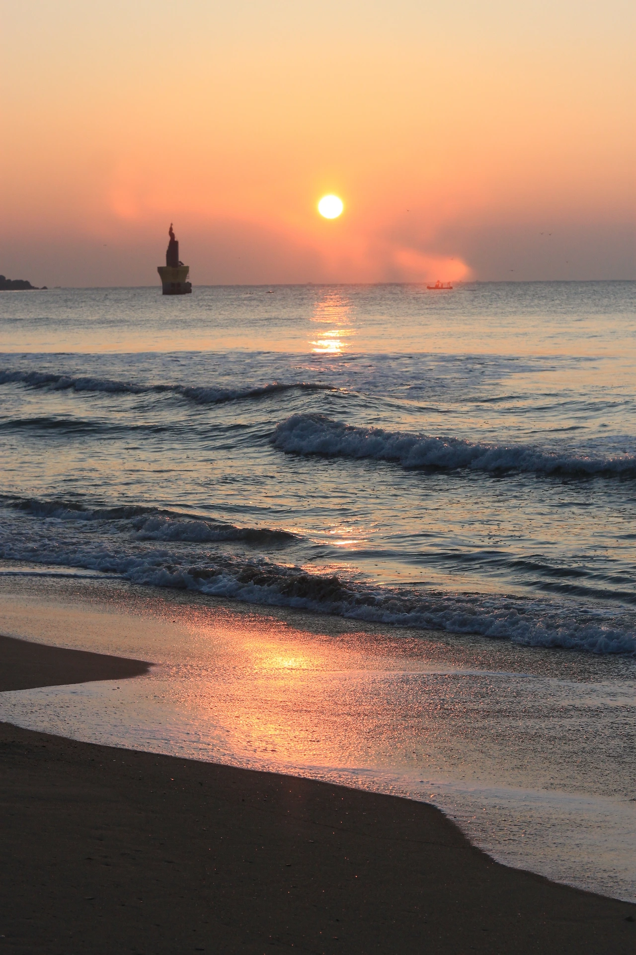 해변을 따라 걸으니, 정말 부산에 왔구나 싶다. 마침 아침해가 떠오르고 있었다. 일출을 보는 행운도 누려보고. 크리스마스 축제용이었는지, 전구장식이 되어있다. 새벽이라 불이 그다지 눈을 끌진 못했지만, 깜깜한 밤에 예쁜 성과, 온바닥에 장식된 전구들이 켜져있다면 무척 아름다울 것같다.