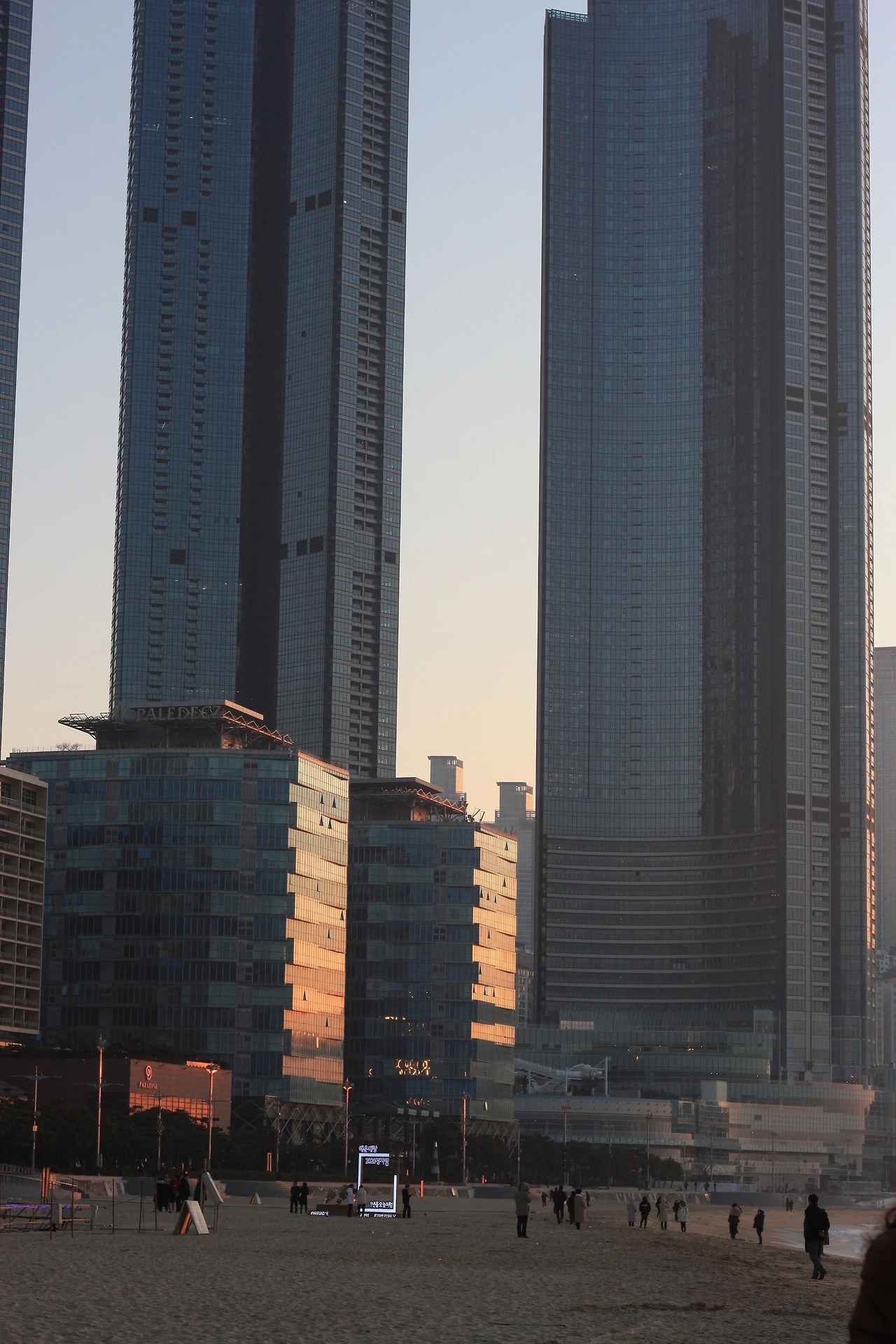 기차역에서 내리니, 이미 어둑어둑해질 때였던 것 같다. 택시를 타고 해운대 숙소를 가야했다. 기차역에서 가깝지는 않았다. 기사 아저씨는 구수하고 편안하게 우리를 맞아주었다. 숙소는 치솟은 고층건물 가운데 하나였다. 서울도 그렇지만, 부산도 고개가 아파서 꼭대기를 볼수 없을 정도의 고층빌딩이 즐비했다.