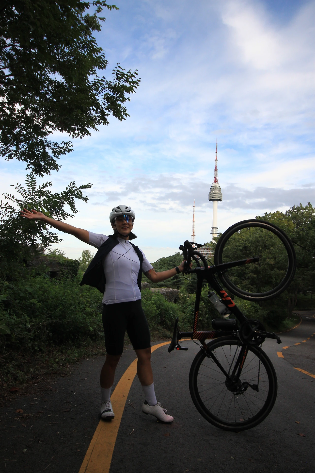 자주 남산 라이딩을 한다는 큰딸의 모습을 제대로 보고 싶어서 나온 길이었다. 자전거를 타고 새벽을 가르는 젊은이들이 많다. 몇 팀을 보내고, 드디어 딸의 모습이 눈에 들어온다. 딸은 우리가 있는 동안 남산 100회 라이딩 기념을 했고, 자신의 기록을 계속 경신하고 있다. 주말에 다른 라이딩이 없으면, 남산과 북악산을 자주 오르내린다고 했다.
