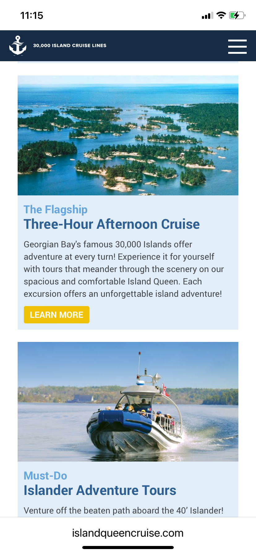 두 사람의 마음만 맞추면 되는 이번 캠핑은 역대급으로 쉬운(?) 캠핑이 될 예정이었지만, 그 첫번째 시험무대가 배타기 예약과정에서 벌어졌다. 킬베어 주립공원은 삼만개의 섬이 점점이 떨어져 장관을 자랑하는 페리 사운드(Perry Sound)에 있어서 크루즈가 유명하다. 우리 동네도 죠지언베이에 접해있는데, 3시간 이상을 달렸는데도 그 죠지언베이라니, 호수안에 패인 만을 끼고 많은 도시들이 분포되어 있다. 그 웹사이트를 가보니, 3층짜리 유람선을 타고 삼만섬을 돌아보는 전통적인 투어도 있지만, 섬을 돌다가 한섬에 내려서 그곳서 하이킹도 하고 놀다가 다시 배를 타고 오는 "모험"이라는 단어가 들어간 보트투어를 해보고싶다는 생각이 들었다.