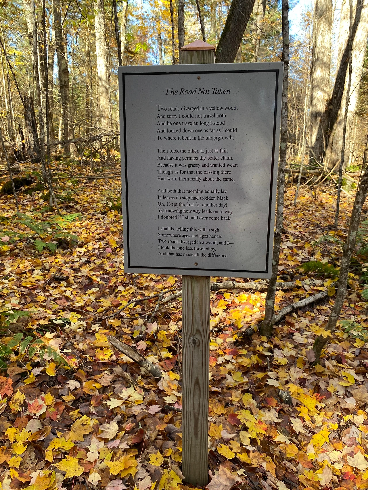 우리는 로버트 프로스트가 머물렀던 농가를 찾아가는 중이었다. 작은 팻말을 지나, 주차장에 세우고 뒤쪽으로 걷는다. 어느새 산은 나무들로 가려 보이지 않는다. 그렇게 작은 오솔길을 따라가니, 프로스트의 집 뒤뜰이다. 뒷산쪽으로 작은 길이 나있다. 이 길을 가볼까, 하는 사이, 이쪽이 더 좋습니다, 우리를 향해 부르는 소리가 들린다. 조금 더 올라가니 프로스트의 시의 길이란 팻말이 있고, 그럴싸한 산책로가 보인다. 우리는 그 길로 들어섰다.