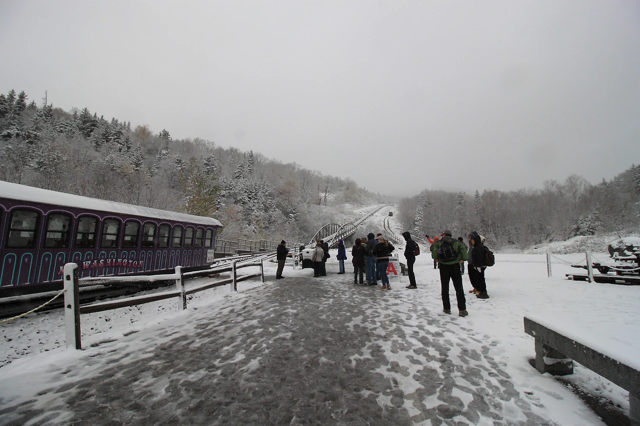 가는 길에 The Mount Cog Trail Station이 보이지 않는다. 가다가 되돌아가서 길을 묻는다. 데이터를 쓰지 않아서 길을 찾는데 애를 먹기도 한다. 렌트회사에서 준 GPS와 예전에 구입했다는 김선생님의 GPS가 잘 작동을 하지않는다. 한 청년이 길을 잘못든 것 같다고 해서, 모두 철렁했다. 그는 자신의 휴대폰으로 길을 찾겠다면서 한 5분 넘게 들여다보더니, 가던 길로 조금 더 가면 나올 것이라고 한다. 그렇게 해서 스테이션까지 시간안에 잘갔다. 그 청년 때문에 거의 다와서 우왕좌왕할뻔 했던 것을 면했다. 기차역은 사람들로 북적였고, 모두 들떠있었다. 그런데 그날 날씨 때문에 정상까지는 올라가지 못하고 중간에서 다시 내려온다는 것이다. 워싱톤산 근처를 가니, 눈이 내리기 시작했다. 며칠전 날씨 때문에 워싱턴산의 기차가 멈췄다는 기사도 보긴 했지만, 날씨가 풀리겠거니 했었다. 10월 중순에 눈 때문에 일이 망쳐질 수도 있다는 것을 그땐 미처 몰랐다.