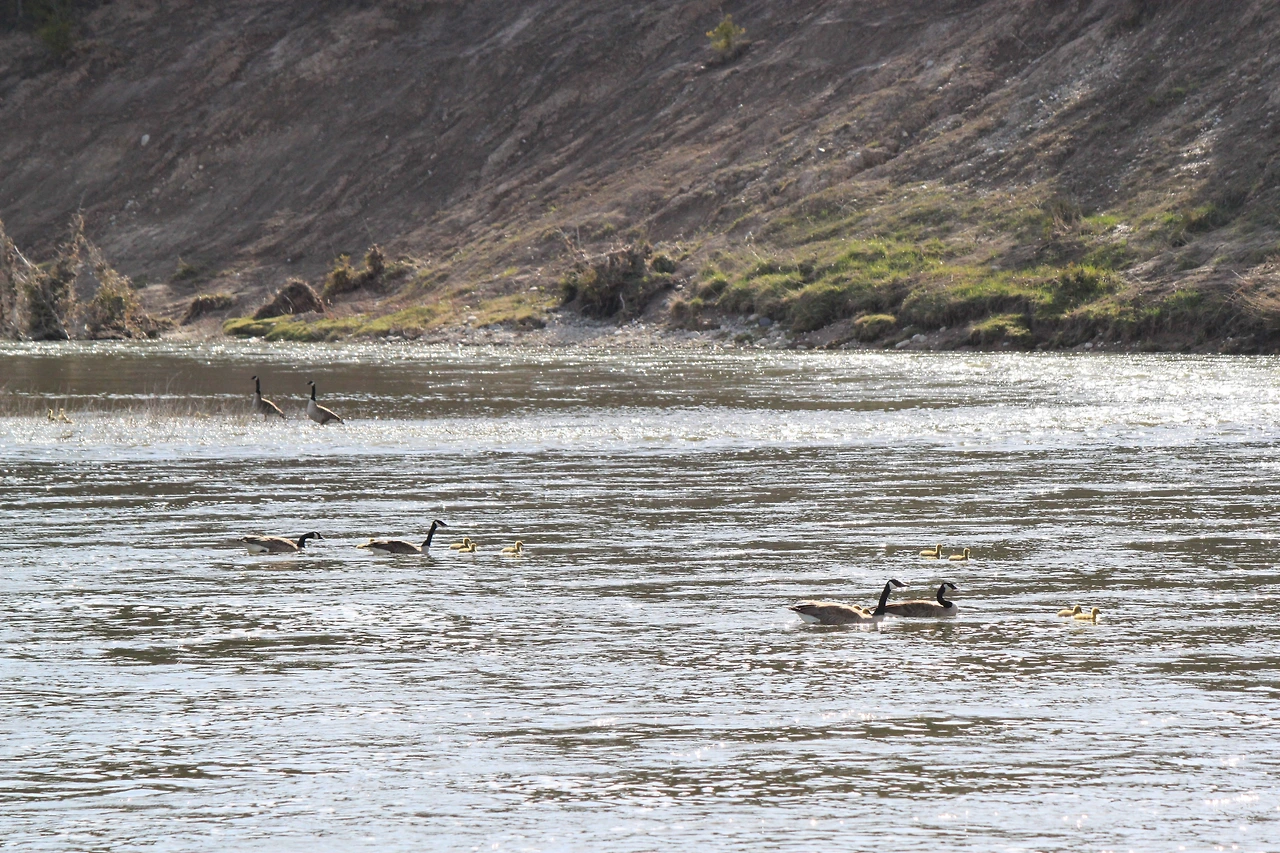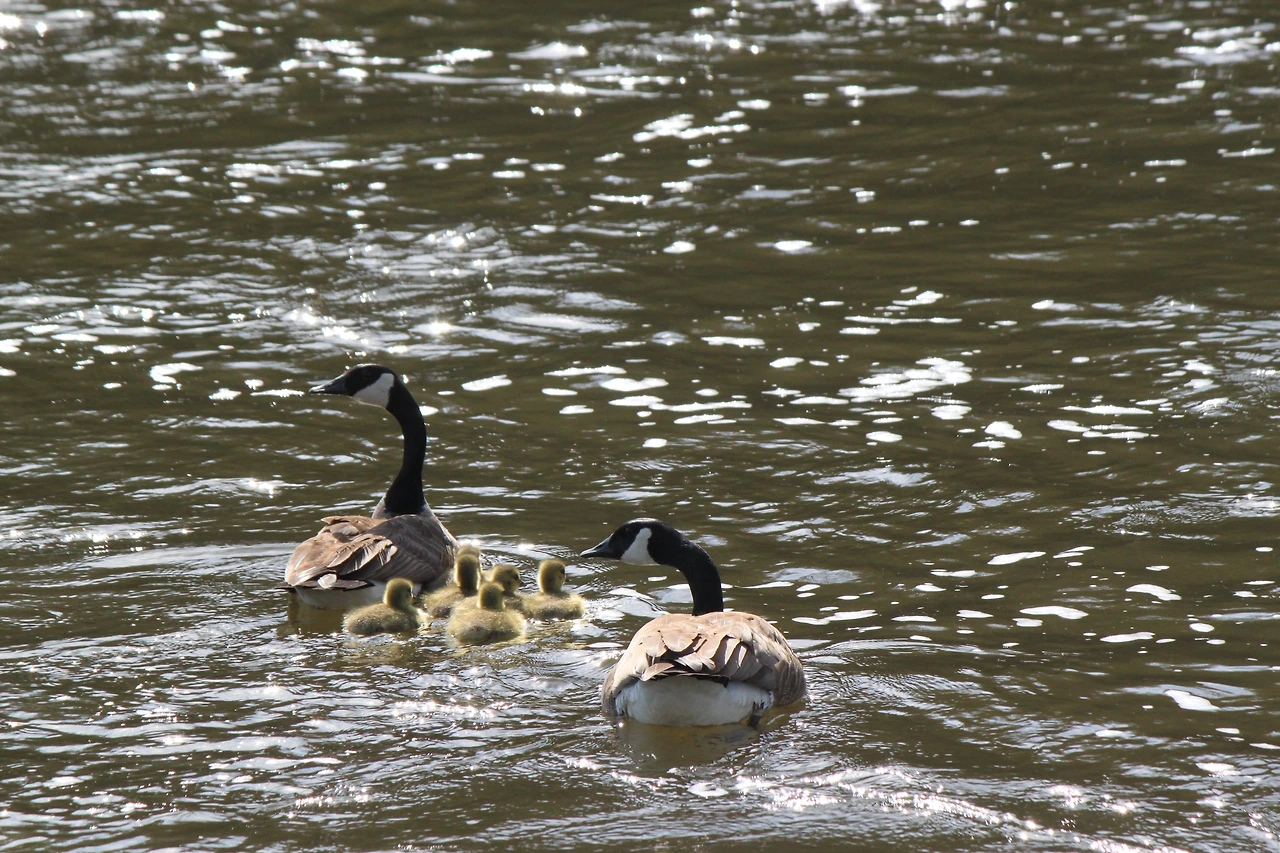 모두 세가족의 기러기 가족들을 한 화면에 담을 수 있었다. 우리 동네 강가 산책로다.