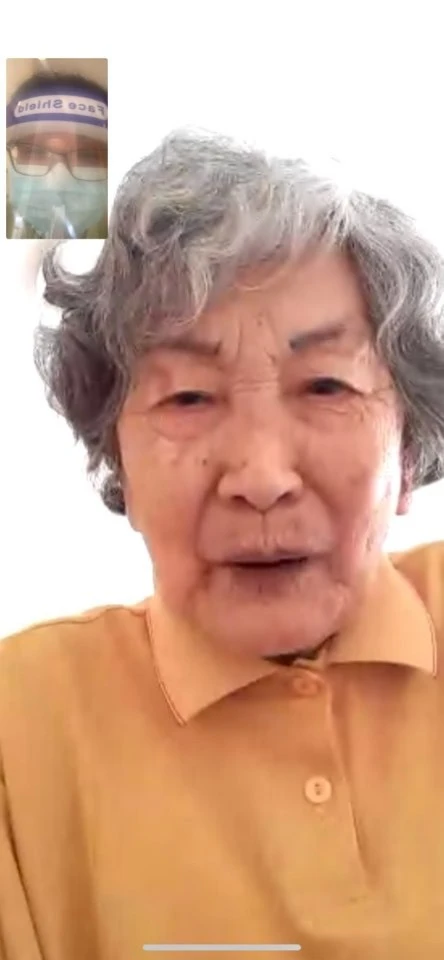 요양병원에서 잠시 일하는 손녀딸의 무장(?)한 얼굴을 보고 놀라시는 엄마의 동영상 통화장면