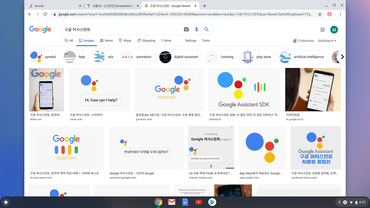 이리저리 옮겨 다니며 작성하던 이 글을 이제는 마무리하려 한다. 무릎 위의 컴퓨터 기능으로서 아주 마음에 든다. 그리고 구글 어시스턴스가 있다. 여러 사이즈의 원형 그림을 누르거나, 헤이 구글 하면 바로 열린다. 이것이 한국어 서비스가 된다.