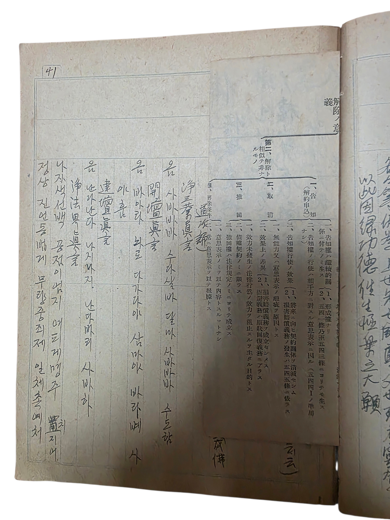 한자를 읽어 내려가다 몇 장을 더 넘기자 드디어 반가운 한글이 나타났다. 하지만 내용은 결코 반갑지 않았다. 법전인지 주술인지 알 수 없는 기괴한 문장들.