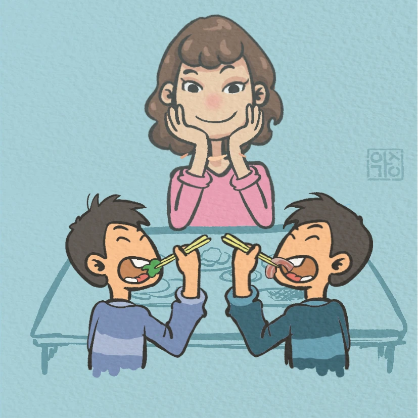 "엄마, 깻잎 맛있어!"