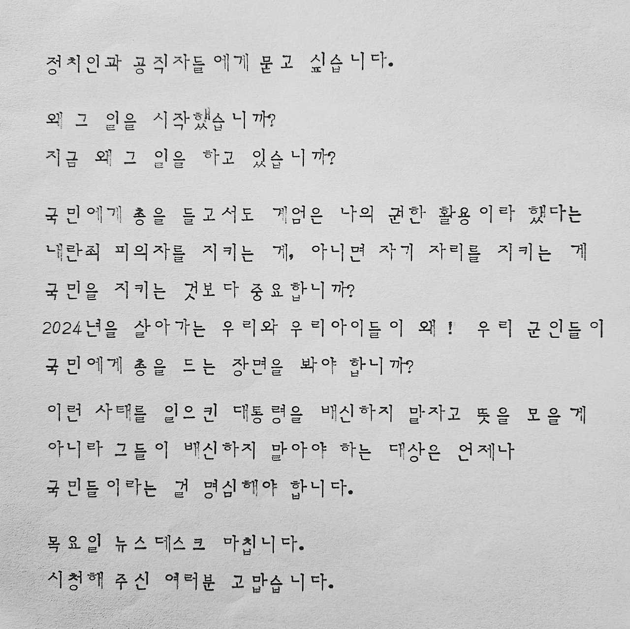 2024년 12월 5일 목요일 MBC 뉴스데스크 클로징