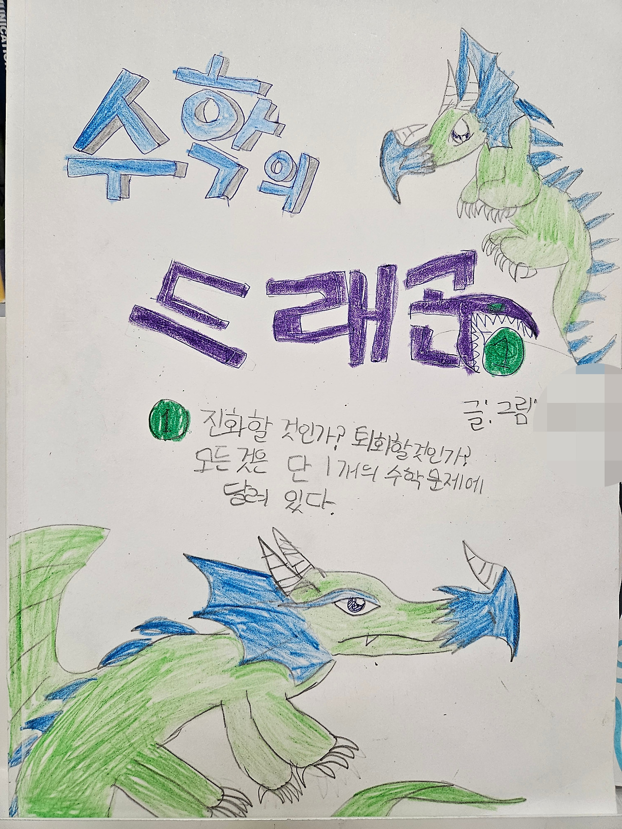 오늘 오후에는 소금창고 창작소 세 작가지망생들이 모여 그림 그리기로 했다. 각자 좋아하는 것 타자기, 드래곤, 트랜스 포머를 그릴 예정이다. 창작 활동이 끝나면 '밍님'의 새로운 도전을 격려하기 위해 생크림 케이크 만들기를 할 것이다. 오전에 우산 쓰고 나가 뼈해장국 한 뚝배기 혼밥 하며 어린이들에게 찐한 위로와 격려를 받고 싶다는 마음이 든 '밍님'이 동네 빵집에서 재료를 구입해 왔다.