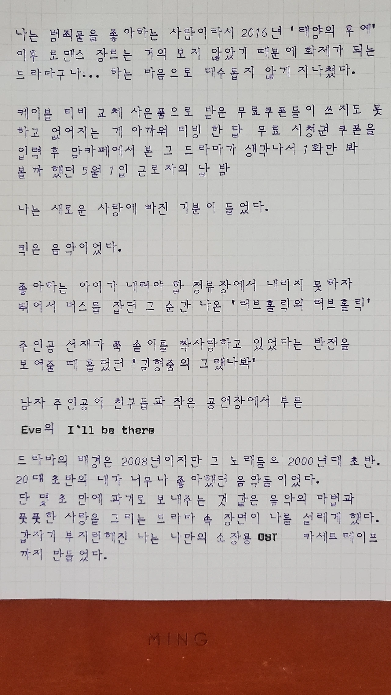 인스타그램, 유튜브에서 '우주인 타자기'를 검색해 주시면 OST 가사 타이핑 영상이 있습니다.