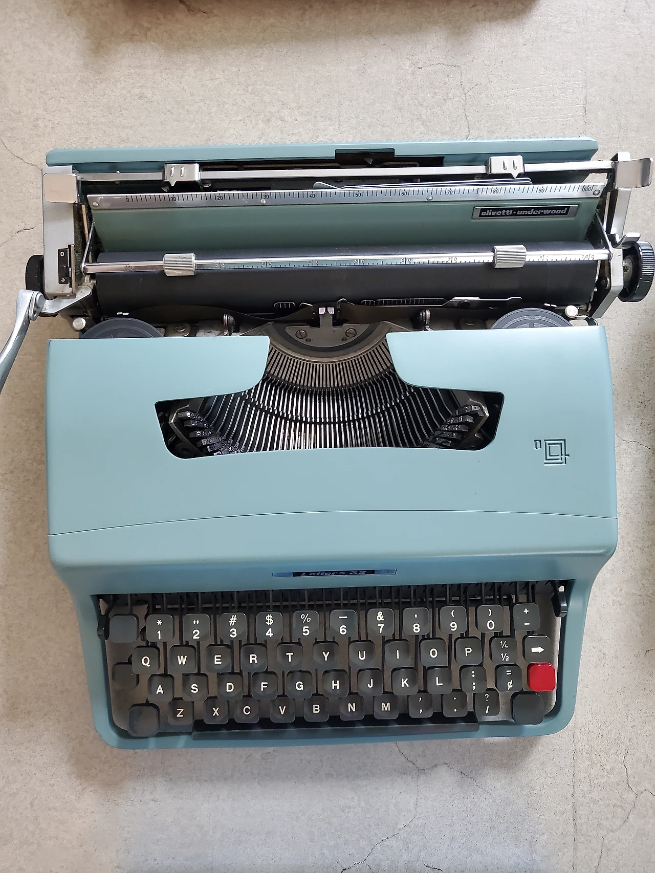 타자기 사용자 모임 카페 게시글에서 영문 필기체 타자기 타이핑 결과물을 보고 완전히 반해버렸었기 때문에 아름다운 필체의 타자기를 갖게 된다면 너무 행복할 것 같았다. 기존에 내가 갖고 있던 타자기처럼 수납하기 편한 작은 사이즈의 타자기를 원했기 때문에 미리 찜해둔 타자기는 올리베티 사의 레테라 32라는 모델이었다.