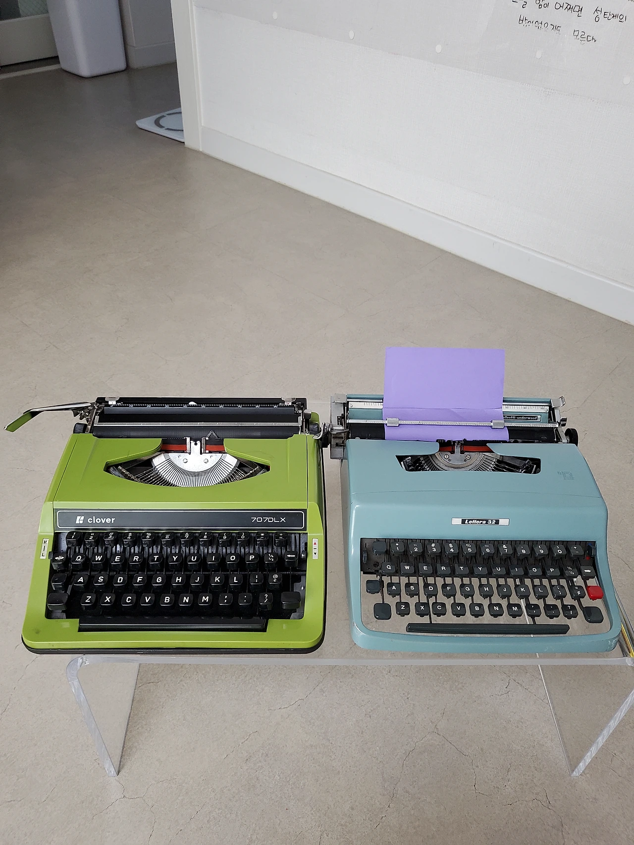 Lettera32 타자기는 실제로 보았을 때 더 아름다웠다. 크기도 7시리즈와 거의 차이가 없는데 오히려 조금 더 작았다. 크로바 타자기는 플라스틱이라 내구성이 떨어지는 반면 Lettera32 타자기는 철제 타자기라 더 좋았다. 저 오묘한 색상이 보면 볼수록 우아하게 느껴져서 왜 이 타자기가 스테디셀러였는지 충분히 이해가 되었다.
