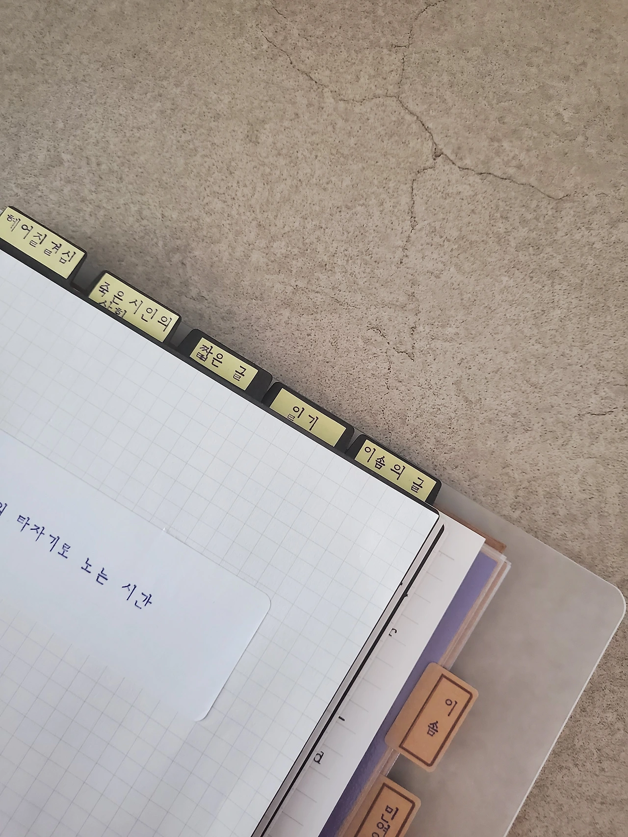 견출지, 스티커용 용지를 이용해 타이핑 후 섹션을 나눌 때 사용했습니다.