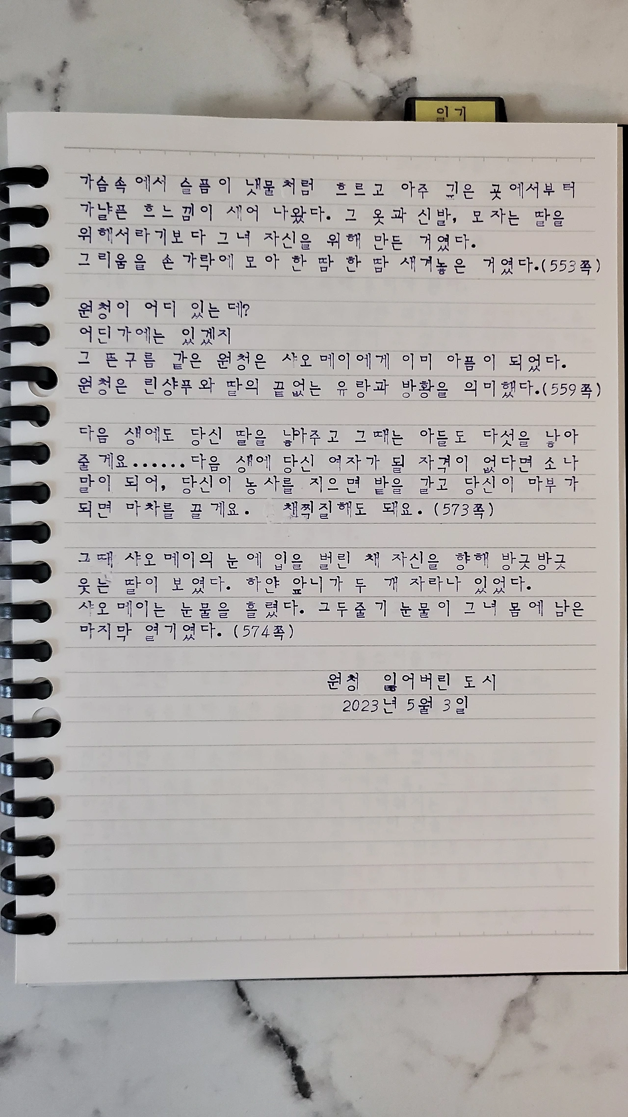 친구가 독서기록장 노트를 10권이나 선물해 줘서 아주 유용하게 쓰고 있습니다. 스프링을 풀어서 한 장씩 타이핑한 후 많이 모이면 다시 한 권으로 만듭니다. 독서기록을 남기고 싶어서 작년에는 책을 많이도 읽었습니다. 좋은 글을 읽고 문장을 소장하기 위해 타이핑해두는 습관이 끄적이듯 쓰는 저의 글을 더욱 풍성하게 해 주었습니다.