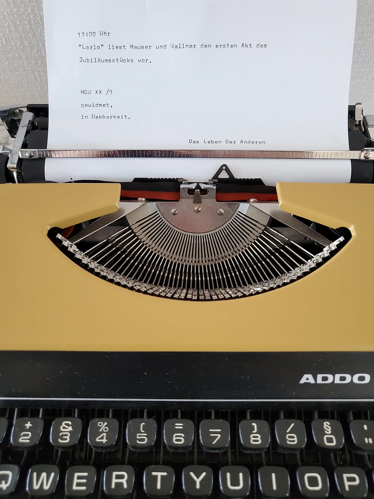 아래의 엄청 큰 타자기는 주인공 비즐러가 감청보고서를 쓸 때 사용하는 타자기인데 이 타자기의 글씨체를 보고 반해서 제가 같은 글씨체의 타자기를 직구한 경험이 있습니다