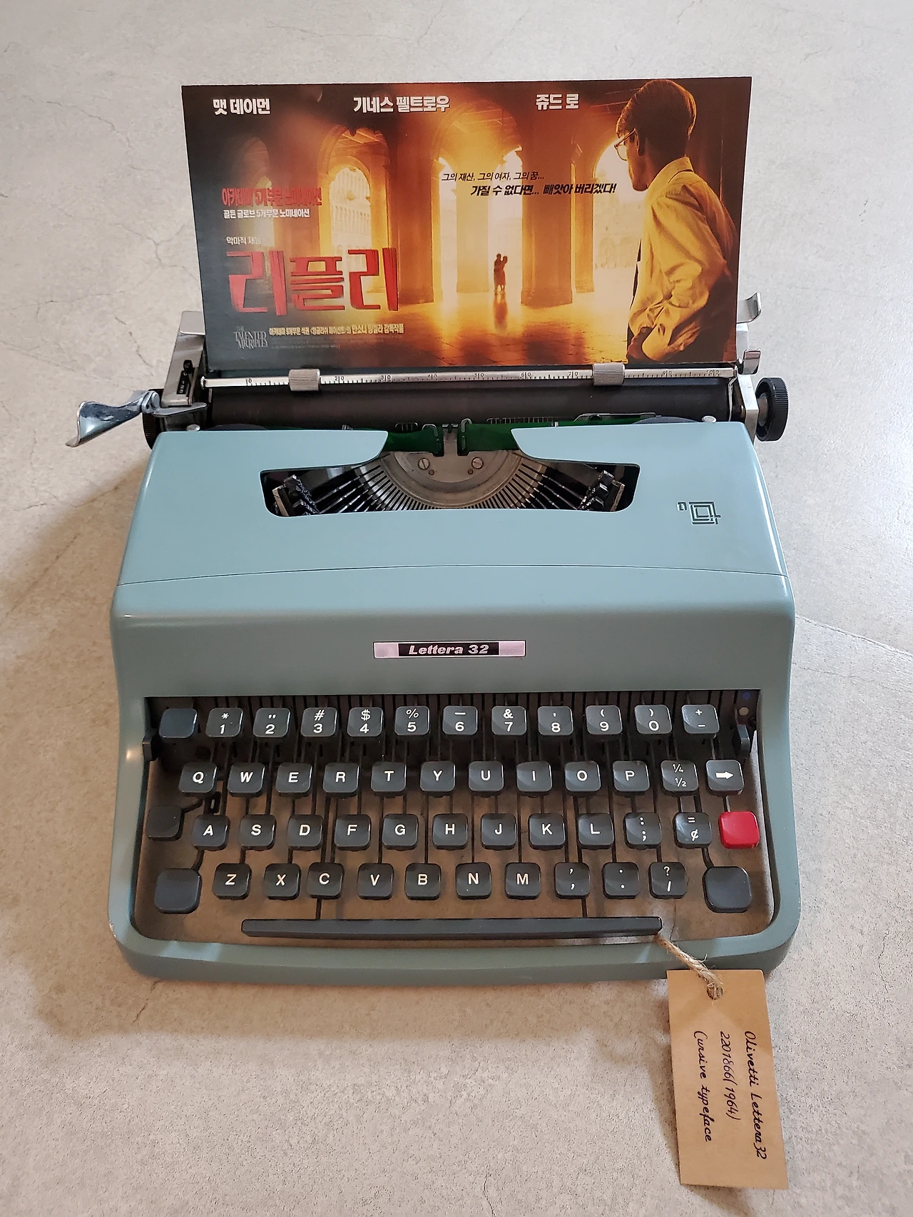 극 중 배경이 이탈리아 남부도시이고 디키(주드로)가 이탈리아를 좋아해서 이탈리아 브랜드 타자기를 쓴 게 아닐까 생각합니다.