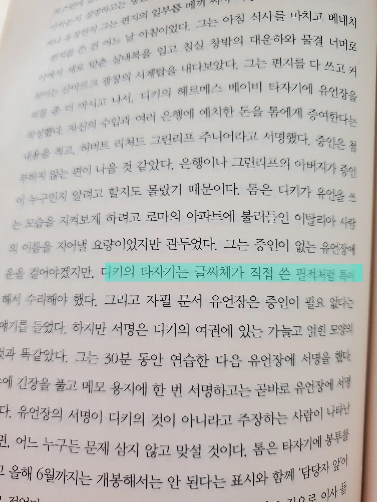 글씨체가 직접 쓴 필적처럼 특이하다-> 필기체 타자기인 것입니다.