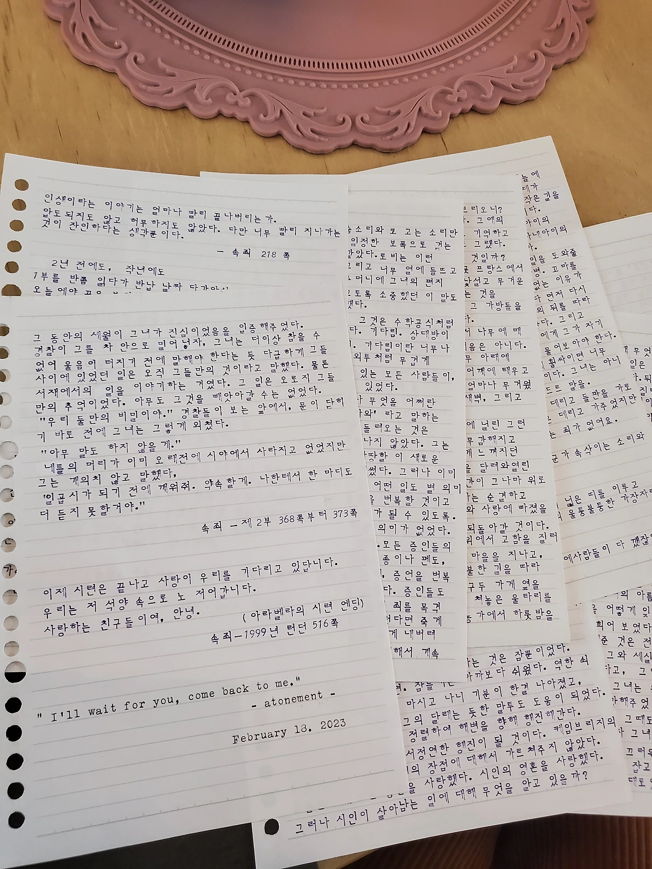 소설을 읽으며 제일 절절하게 느껴졌던 6페이지를 한글타자기로 타이핑해 보았습니다.