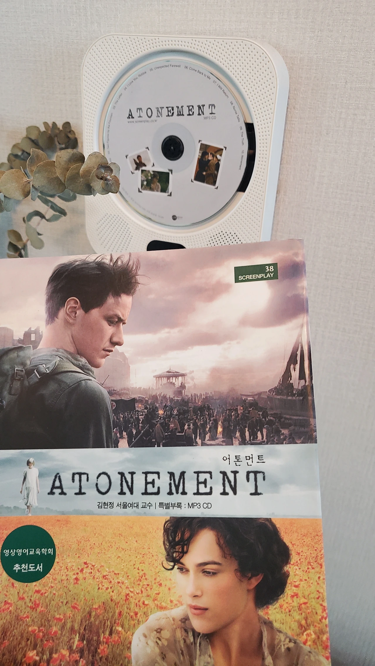 스크린영화사에서 출판한 어톤먼트 대본집(번역포함) 입니다. 영화 Mp3 CD가 부록으로 제공되는데 타이핑한 글씨체로 ATONEMENT라고 써 있는게 아주 예쁩니다.