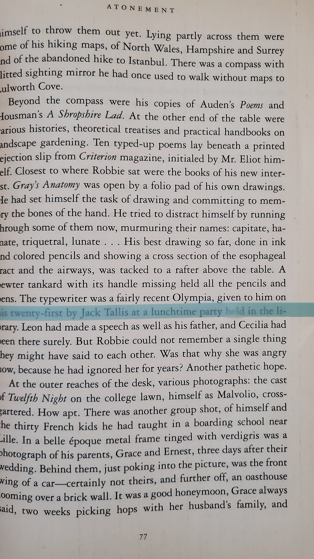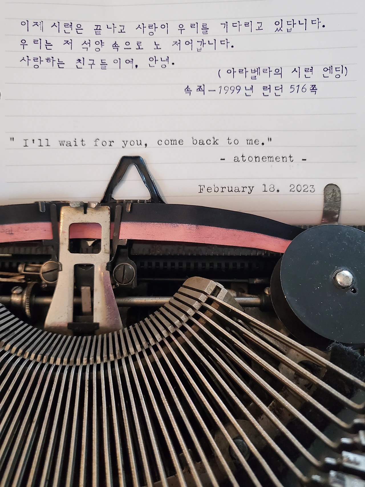 '이언 매큐언'이 쓴 '속죄(Atonement)'는 제가 몇 장 읽고 도서관에 반납하기를 두어 번 반복했던 책이었습니다. 타자기를 수집 한 이후 제대로 읽기 시작했더니 다음장이 궁금해져 출 퇴근길 버스정류장에서도 읽다가 마음의 준비 없이 눈물이 터졌던 적도 있었습니다.