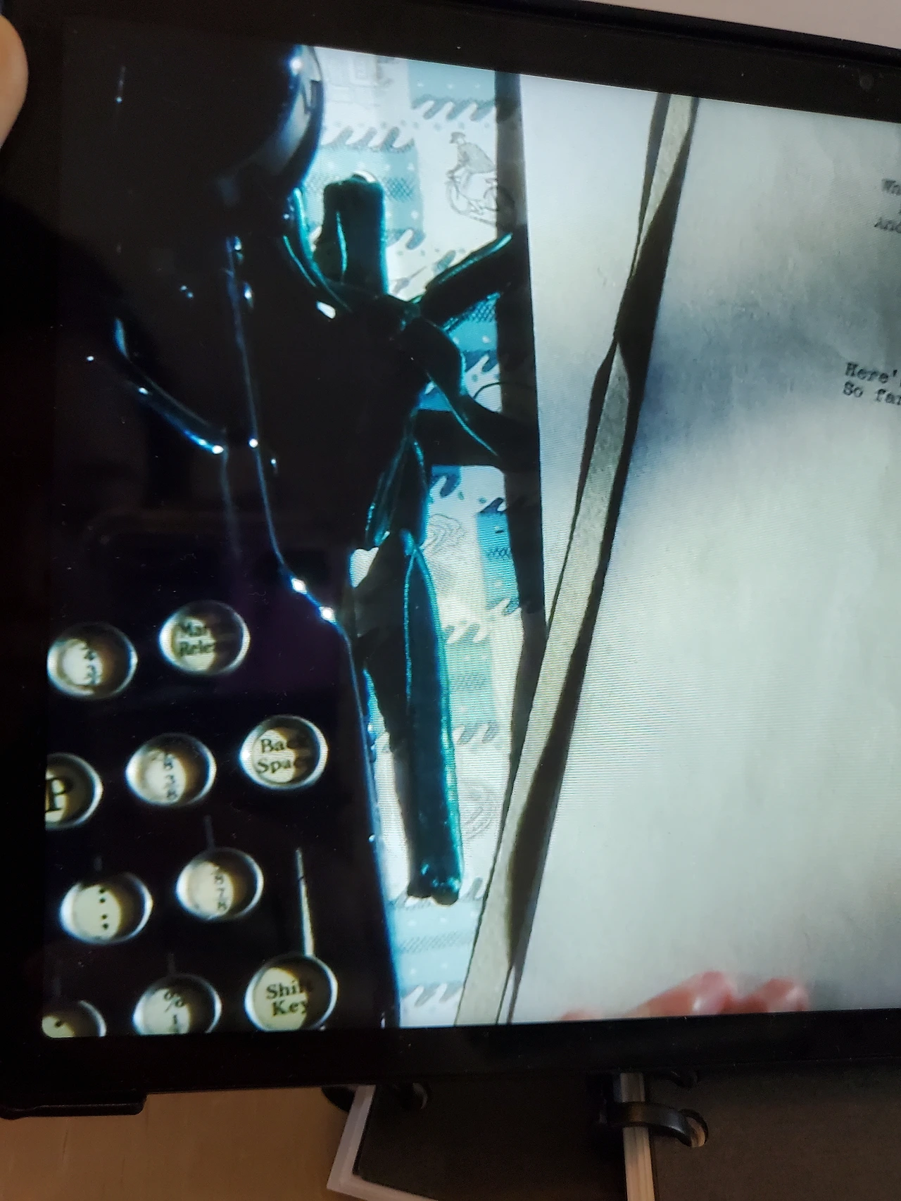 또 다른 주인공! 로비 (제임스 맥어보이)가 사용하는 타자기는 이렇게 생겼습니다.