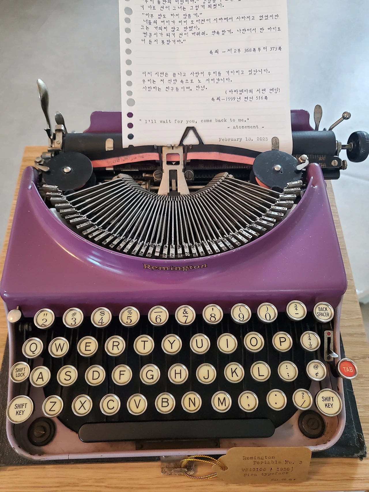 소장하고 있는 타자기 중에 유일하게 1935년을 살았던 Reminton Portable No3로 가슴 아픈 대사도 타이핑해 보았습니다.(역시 레밍턴은 예쁜데 타건감도 너무 좋아요!)