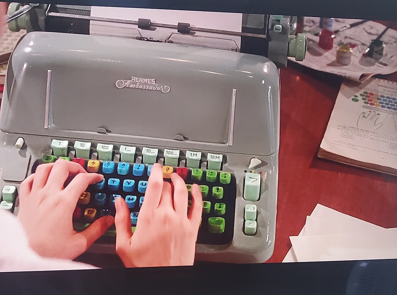 이 영화에서 가장 많이 쓰는 타자기는 스위스 브랜드 Hermes사의 Ambassador 입니다. 독수리 타법이었던 주인공 로즈가 자판을 익히기 위해 컬러풀한 키캡과 네일컬러를 맞춰서 연습하는 장면이 너무 예뻐서 기억에 남았습니다. 저 교육용 키를 가진 Hermes 너무 갖고 싶다!!! 하지만 찾을 수 없습니다. 영화를 위해 만든 것인가 봐요.