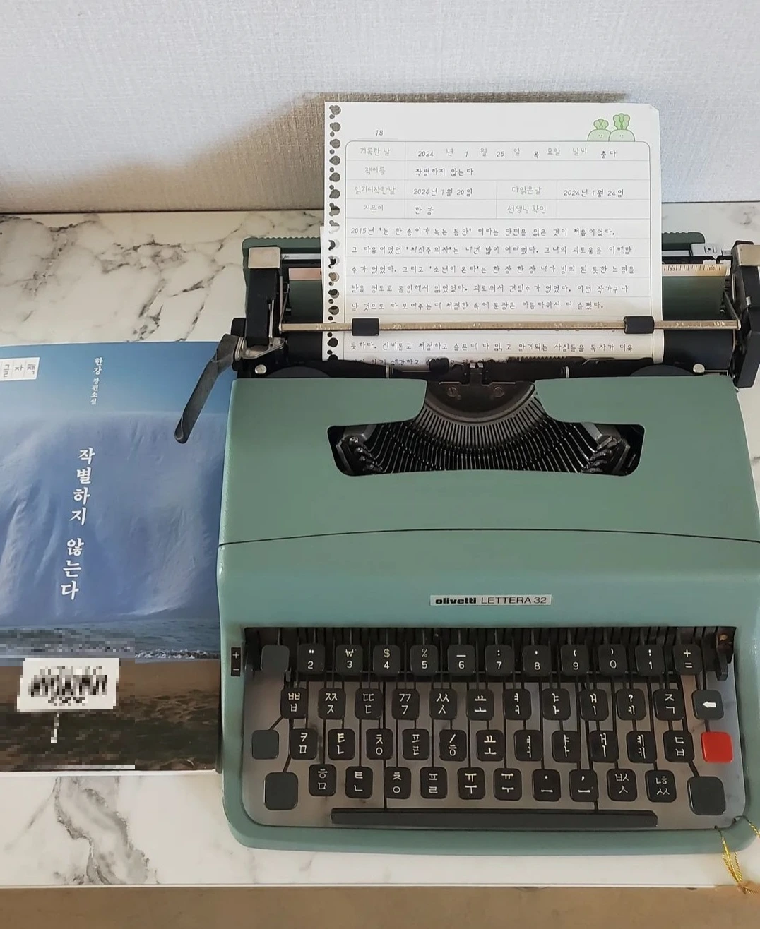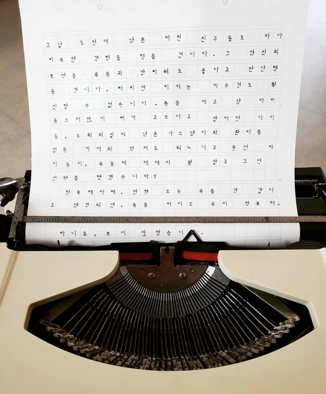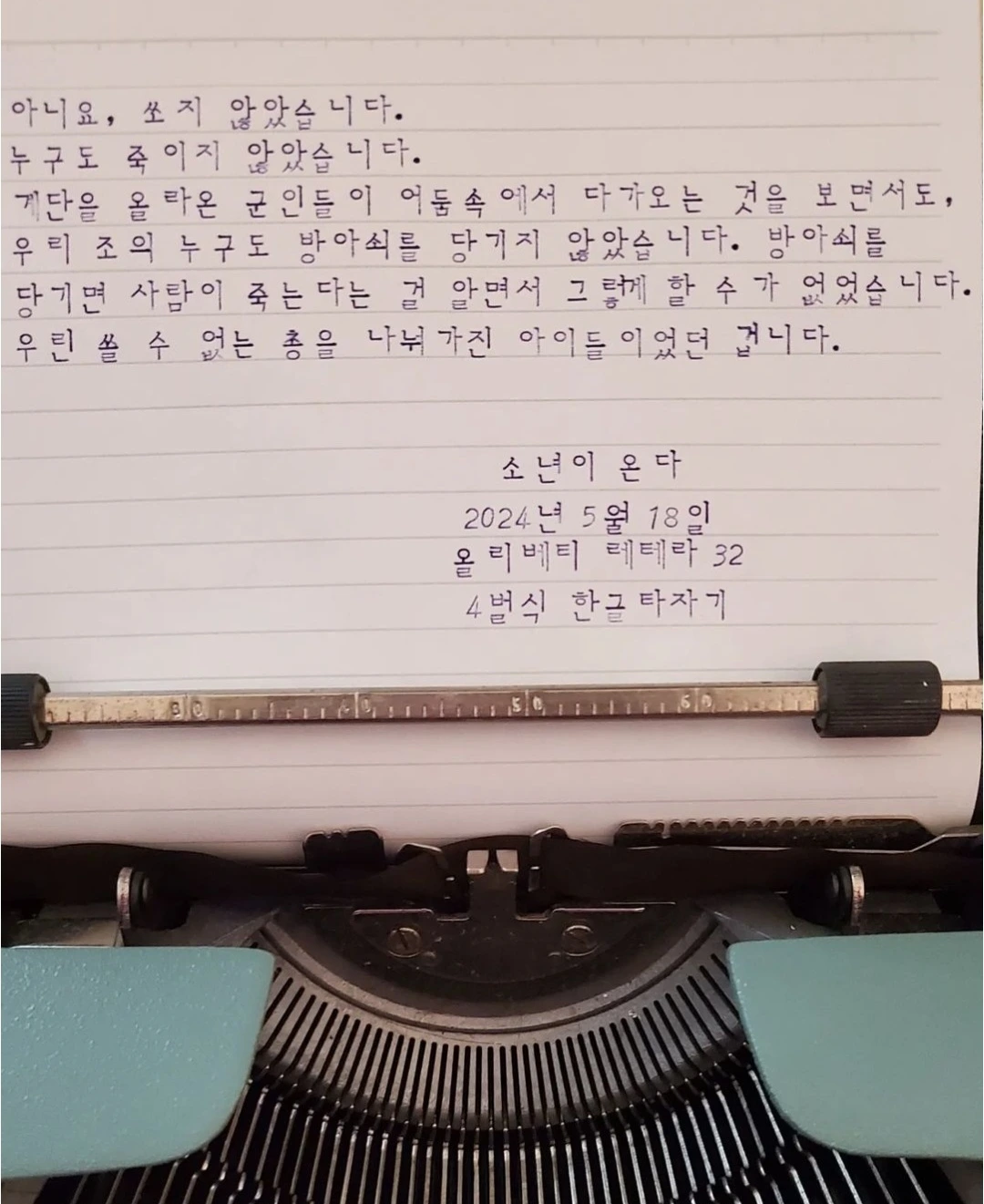 타자기를 처음 구입했던 몇 년 전 필사했던 '소년이 온다' 한 페이지