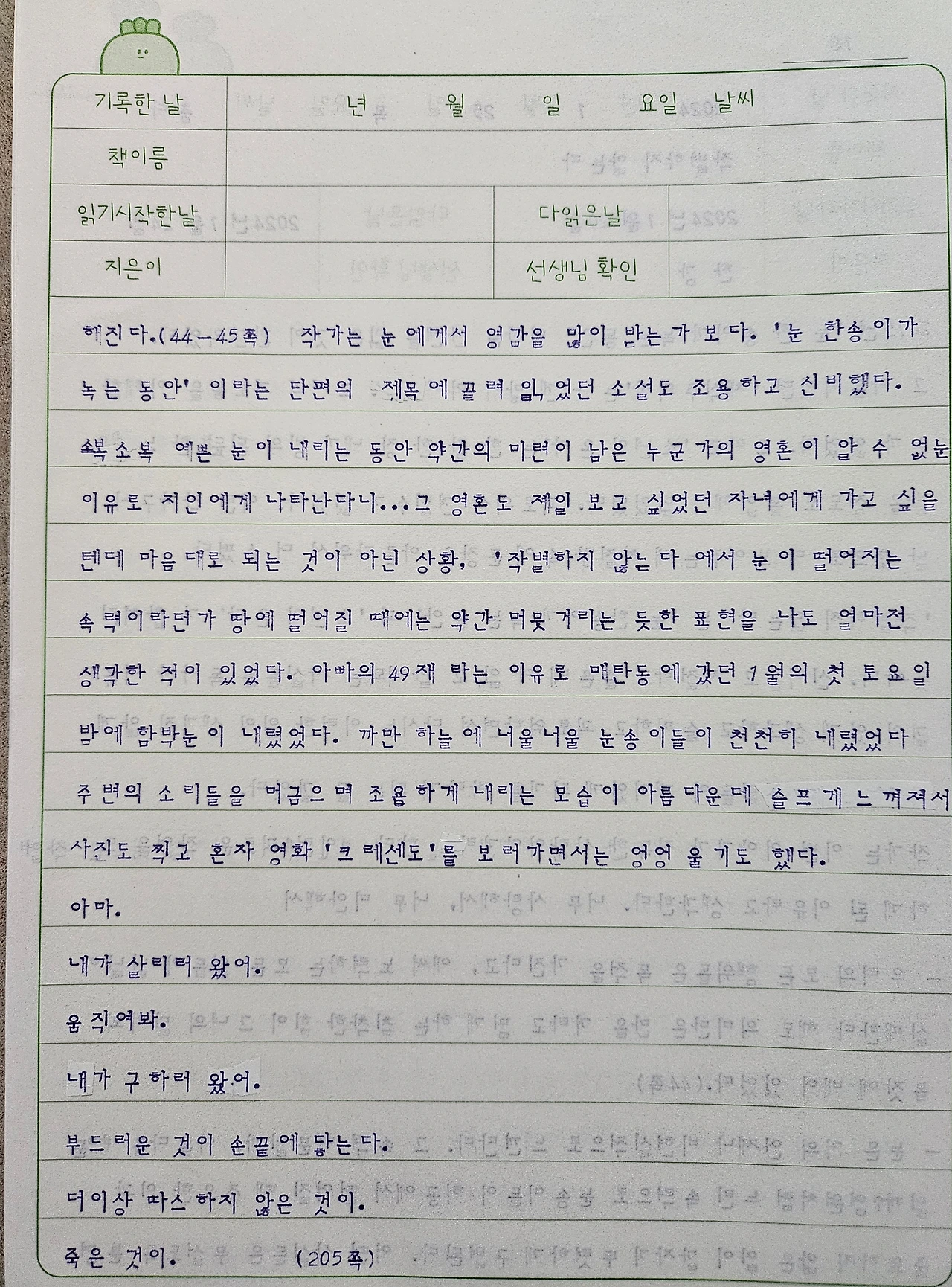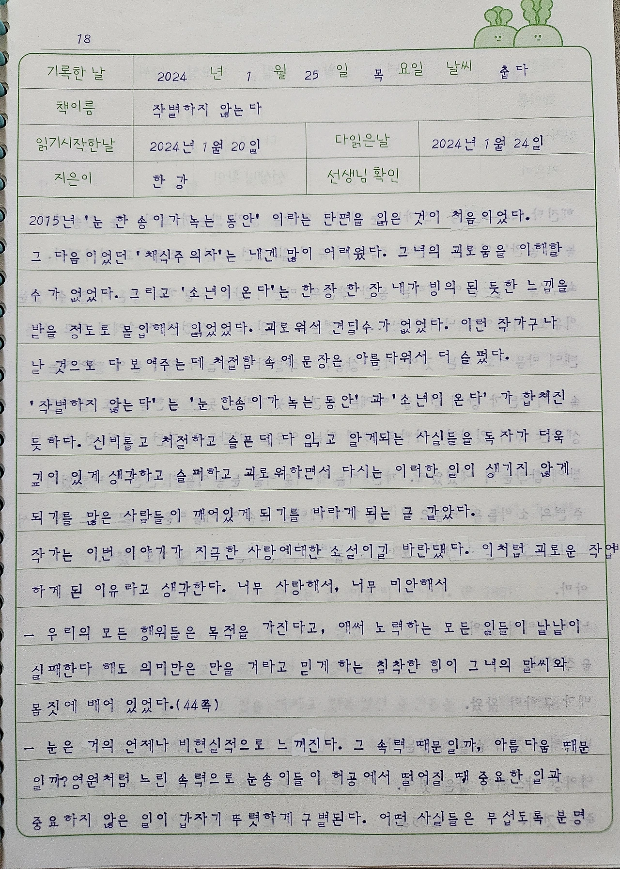 2024년 1월에 남긴 '작별하지 않는다'의 독서 기록