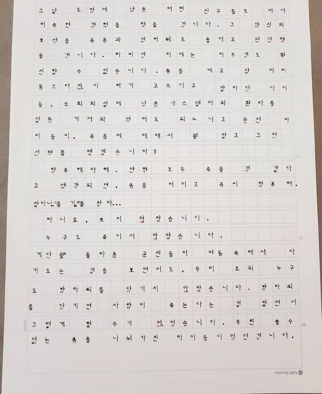 2024년 5월 18일에 수많은 동호, 정대, 정미들을 기억하며 다시 타이핑했던 페이지...
