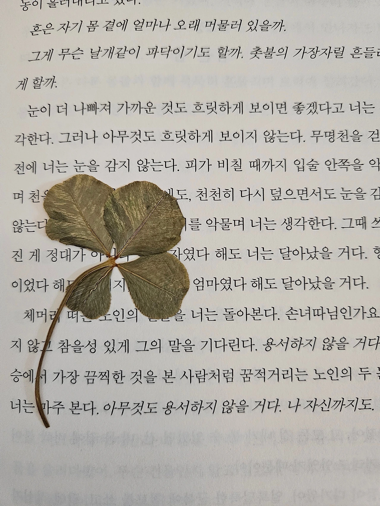 오늘 한강 작가님의 노벨문학상 수상이 소중하게 간직하던 책 속의 네 잎 클로버 같다고 생각됩니다. 지금의 우리나라에 꼭 필요한 감동인 것 같습니다.