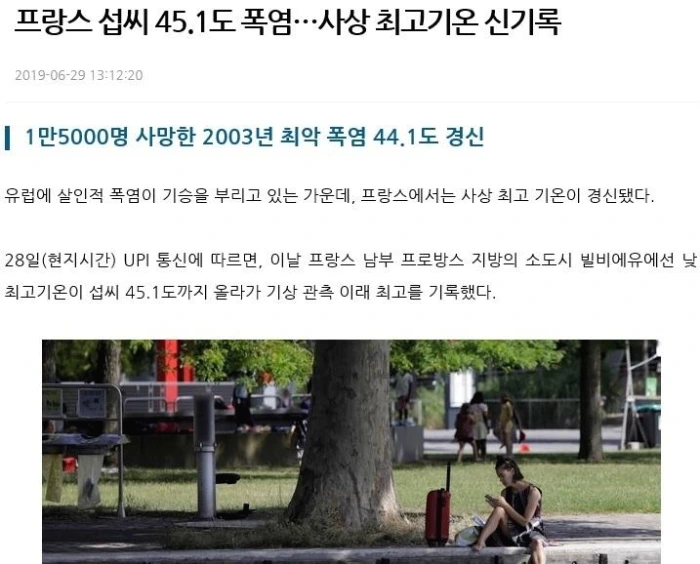 어제 한국에 있는 친구로부터 파리의 날씨가 한국 메인뉴스에 올랐다며 연락을 받았다. 최고기온을 확인했다. 39도. 이 나라는 한여름에도 공기가 습하지 않아 그늘에만 있으면 꽤 선선하다고 들었던 것 같은데, 그런 통상적인 말들도 37도가 넘어가는 들끓는 열기 앞에선 무의미한가 보다. 굳이 말하자면 숯불구이냐 찜요리냐의 차이 정도라고나 할까.