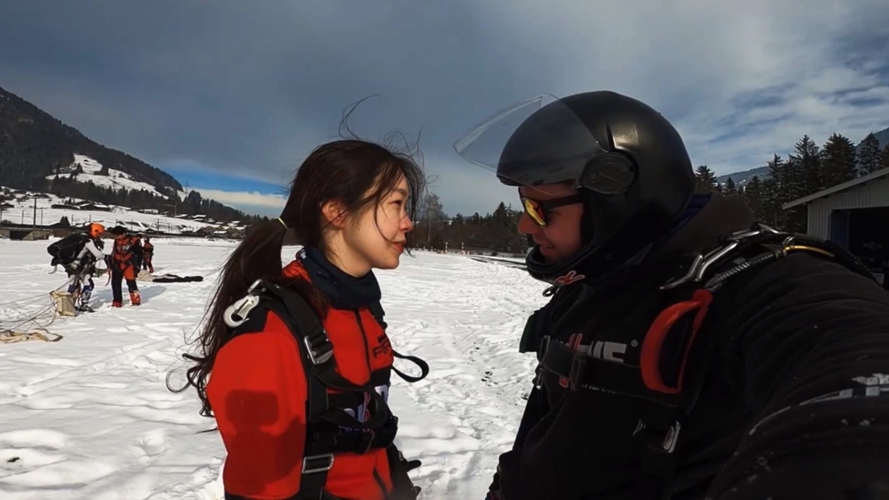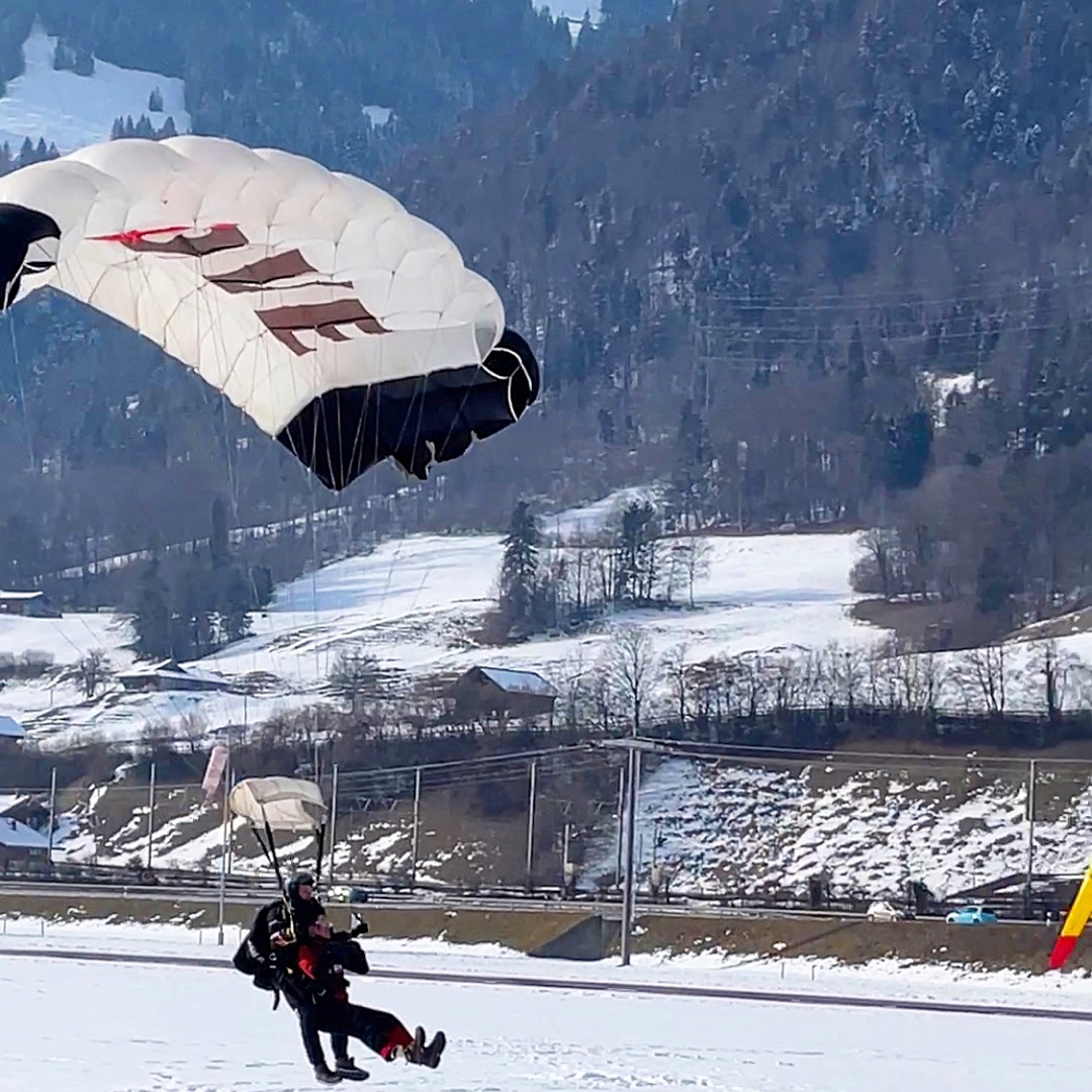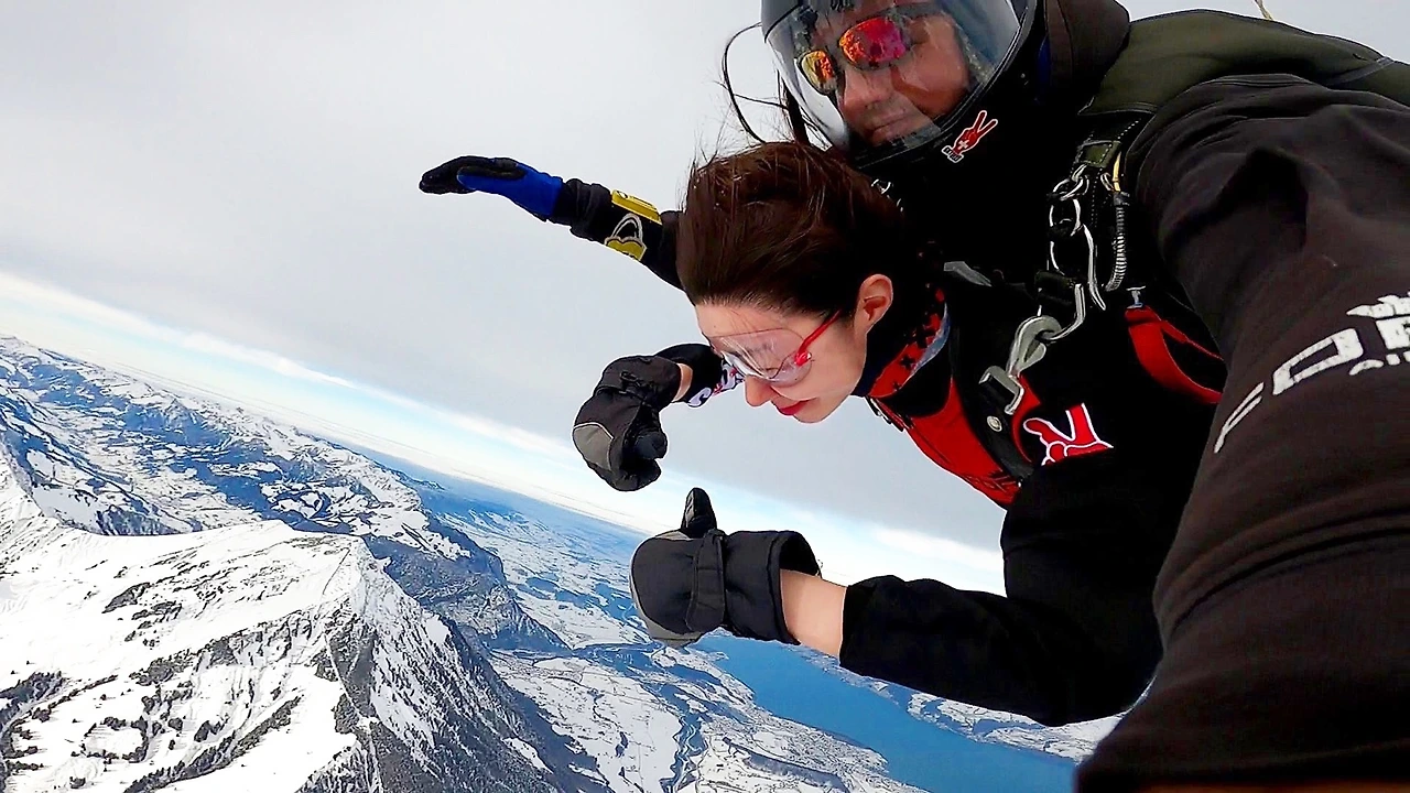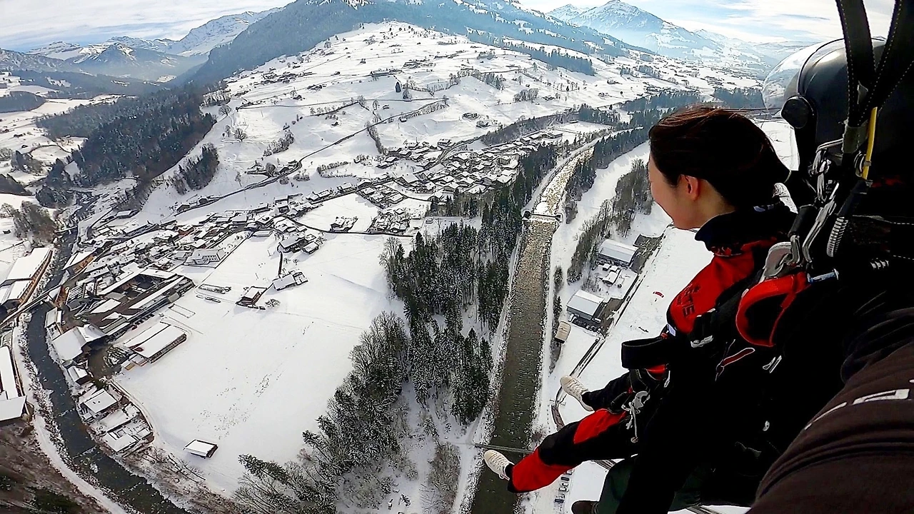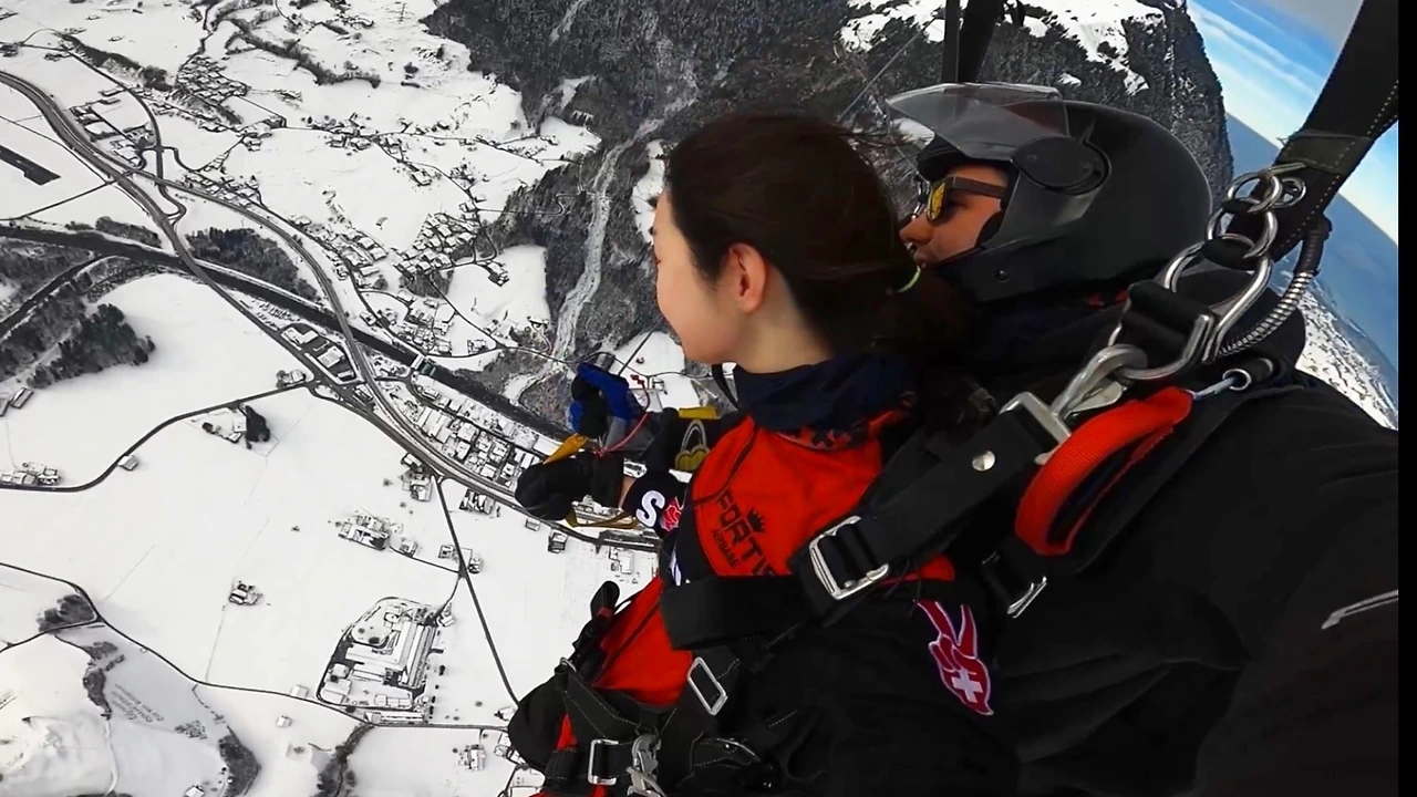 앞에 서 있는 것만으로 압도당할 정도로 거대해 보이던 산이 미니어처처럼 보일 정도로 끝없이 올라갔다. 눈 덮인 알프스가 아득해 보이던 어느 지점에서 마침내 비행기 문이 열렸다. 우리에게는 준비할 시간이라는 개념이 없었다. 앞의 너 다섯 명이 마치 ’비자발적 자살특공대‘처럼 거의 2초 연속으로 떨어지기 시작했다. 두려움을 느낄 새도 없이 순식간에 내 차례가 됐다. 다리를 비행기 밖으로 꺼내두고 아래를 내려다보니 눈이 가득 뒤덮인 스위스의 겨울이 발아래 가득했다. ’하나 둘 셋‘같은 카운트다운도 없이 그대로 추락. 하늘에서 지상으로 수직 낙하가 시작됐다.
