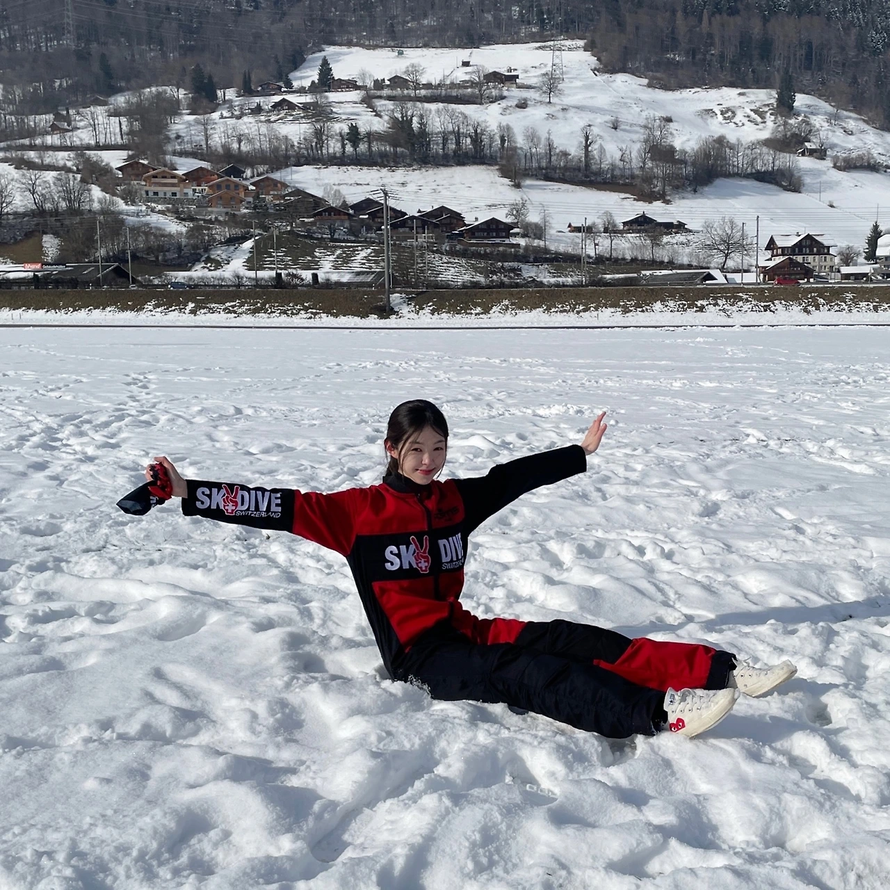 이제부턴 패러글라이딩타임. 다이버가 내게 낙하산 손잡이를 넘기며 직접 운전해 보라고 했다. 줄을 왼쪽으로 당기니 왼쪽방향으로 부웅- 오른쪽으로 당기니 오른 방향으로 스르르 미끄러졌다. 자유로운 새 한 마리가 되어 가고 싶은 방향대로 하늘을 이리저리 누비다가 다시 다이버에게 손잡이를 맡겼다. 다이버는 몇 번의 짜릿한 날갯짓을 더 선보인 뒤 착지 준비를 하라고 내게 알렸다. 나는 두 다리를 들어 올렸고 눈밭으로 엉덩이부터 다리까지 스르르 미끄러지며 파묻었다. 착지 완료.