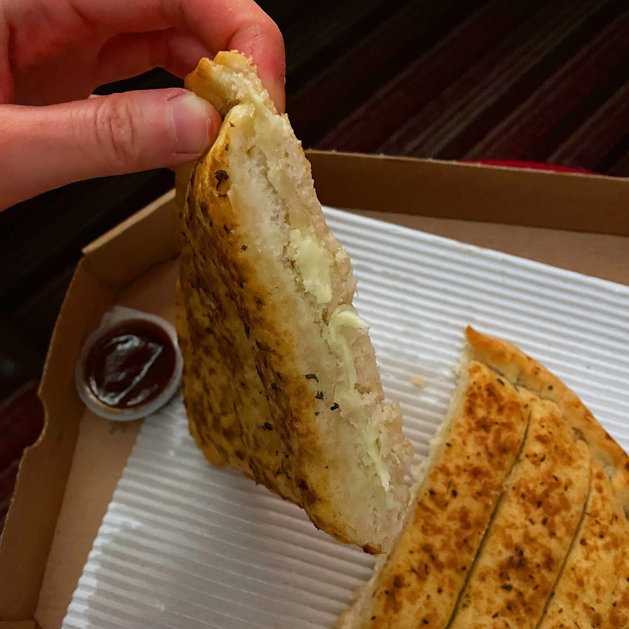 숙소에 도착하니 밤 11시. 체크인을 마치고 들어오니 11시 반. 생각해 보니 공복 상태로 벌써 한참이 지난 터였다. 배를 채우면 좋을 텐데 주변의 카페테리아들은 이미 문을 닫은 듯싶었다. 그때 마침 머릿속에 한 가지 음식이 떠올랐다. 프랑스 유학 시절 종종 배달로 시켜 먹던 피자헛의 모짜렐라 브레드스틱. 치즈크러스트 피자의 엣지 부분만 모아놓은 것 같은 애피타이저인데 한국에는 없고 프랑스 피자헛에만 판매하는 메뉴로 유학생시절 나가긴 귀찮은데 맛난 게 땡길 때마다 틈틈이 시켜 먹던 메뉴였다.
