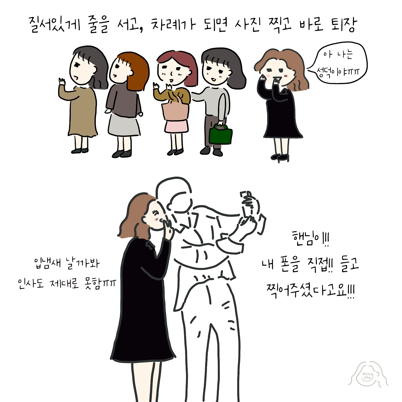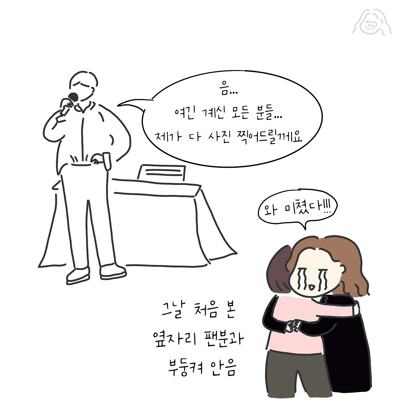 그런데 셀카를 원하는 팬들이 많이 아쉬워하자, 핸님이 갑자기 이 자리에 있는 모든 분들과 다 사진을 찍어드리겠다고 선언하셨다!! 응?? 정말?? 160명이 넘는데? 진짜 다 찍어준다고? 내가 잘못 들었나? 그냥 해보는 말인가 싶었는데 진짜 160명 한 사람 한 사람 핸드폰을 직접 들고 다 찍어주셨다. 와... 진짜 천사가 강림했나?이 날 이후로 나의 번아웃은 완전히 끝나버렸다. 핸님과 셀카 찍은 사진을 보면 지금도 입가에 미소가 한가득 해진다.