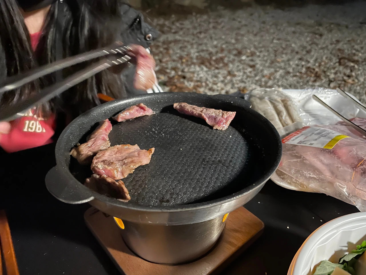 늘 위험할까 봐 구석에서 음식을 해서 테이블에 차려주다가 이번에는 아이도 같이 하기 위해 미니 화로를 준비했다. 고체연료를 3개는 넣어야 고기가 좀 익는구나~ 싶었지만 처음 구워보는 고기에 아이는 신이 났고 고기 굽느라 밥을 제대로 못 먹겠다고 귀여운 투정까지 부린다. (훗. 이제 알겠니. 엄마는 늘 그랬다고)