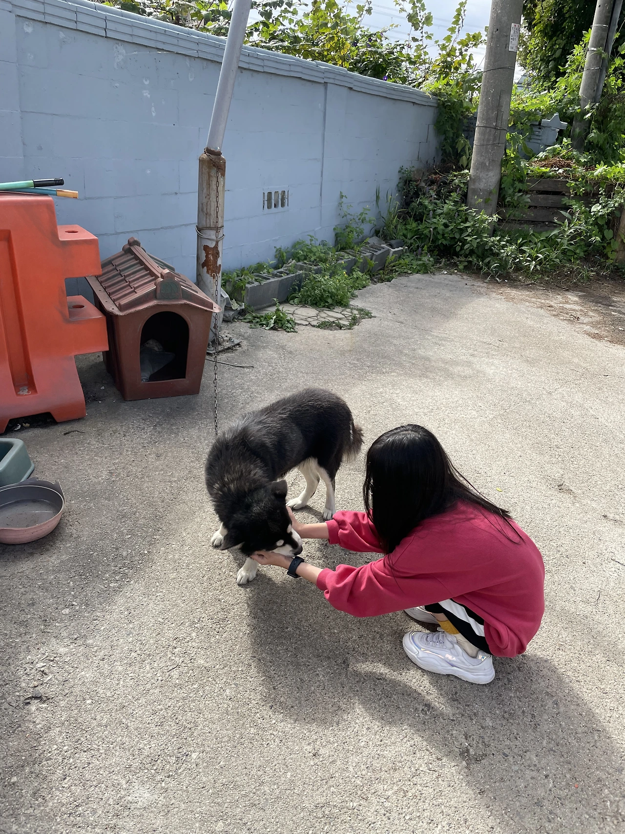 등유 주유기 옆에 강아지가 있길래 아이에게 말해주니 신나서 나와 한참을 쓰다듬고 사진도 찍어주고 예뻐해 준다. 아직도 갈 길이 멀지만 마음의 짐이었던 '등유'도 사고 아이도 예쁜 강아지와 놀았기에 남은 길을 편하게 갈 수 있었다.