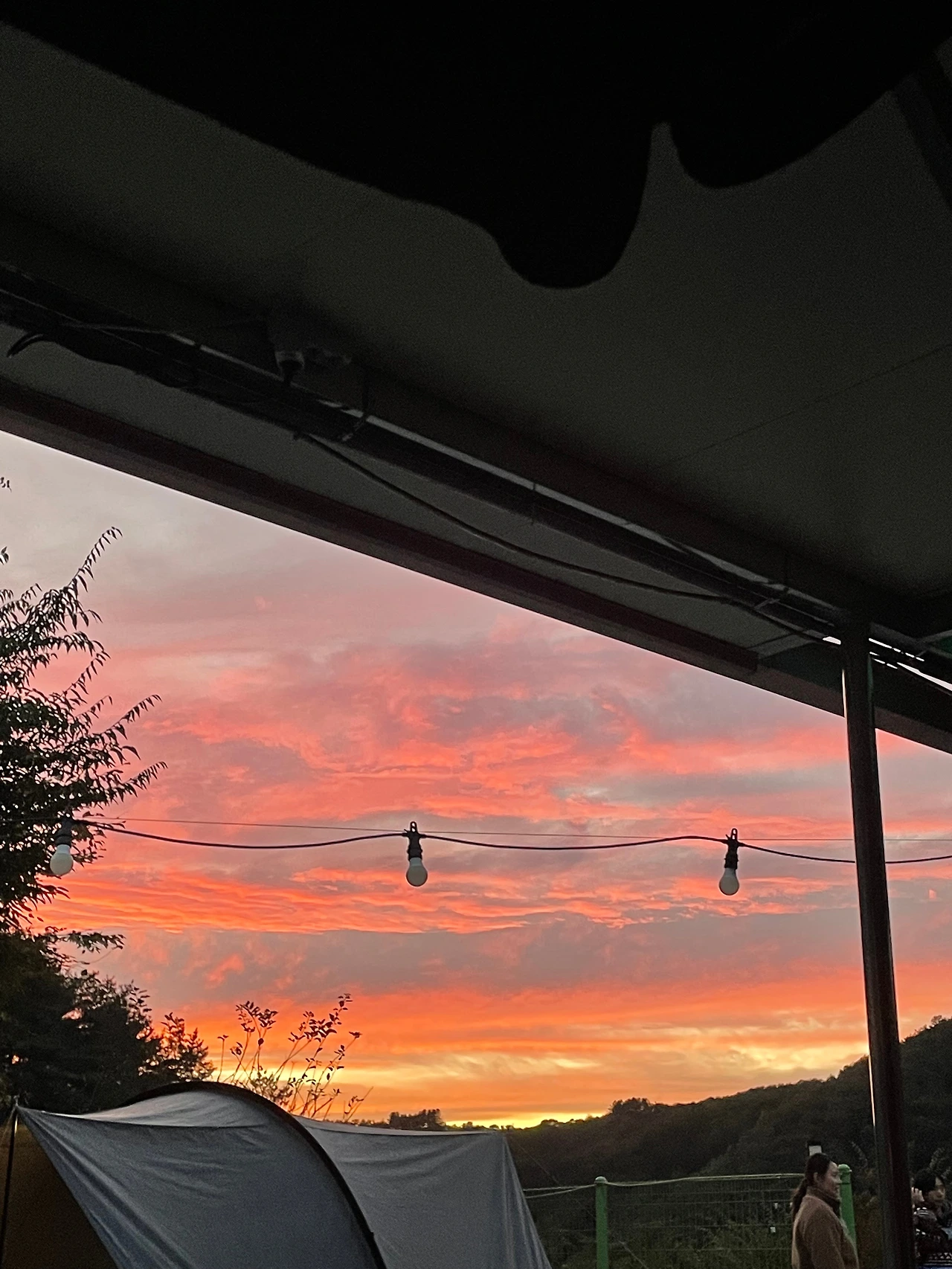 정리하느라 미처 하늘을 못 봤는데 와.. 멀리 온 보람이 있다. 명품 노을쇼가 펼쳐지고 있었다.