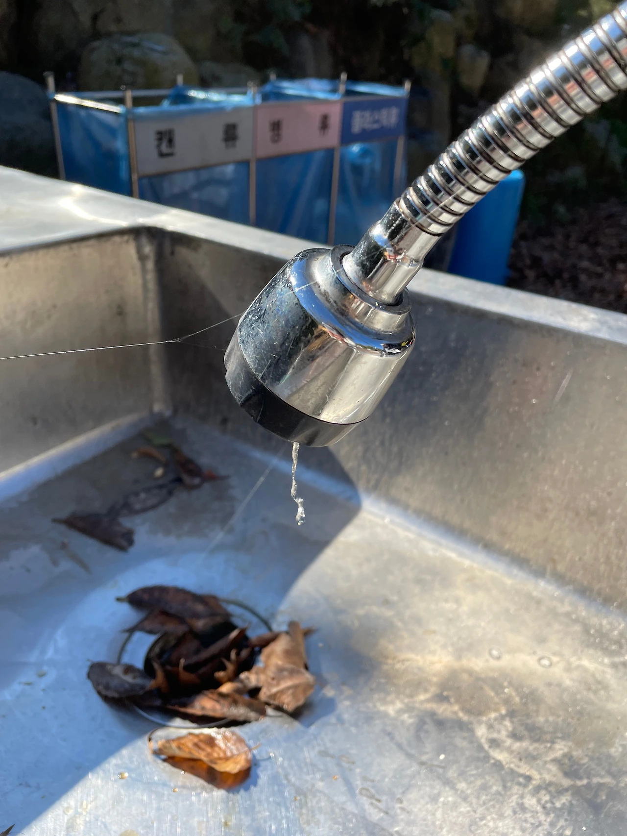 그래도 용기를 내어 화로대부터 씻으려 나갔는데 고맙게도 물이 얼어 씻을 수가 없다.