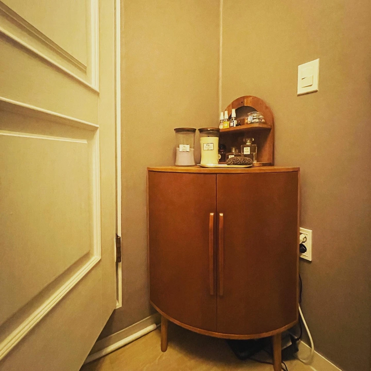 보너스로, 못생긴 철제 수납장이 들어와 있던 화장실 구석 수납장도 바꿨다.