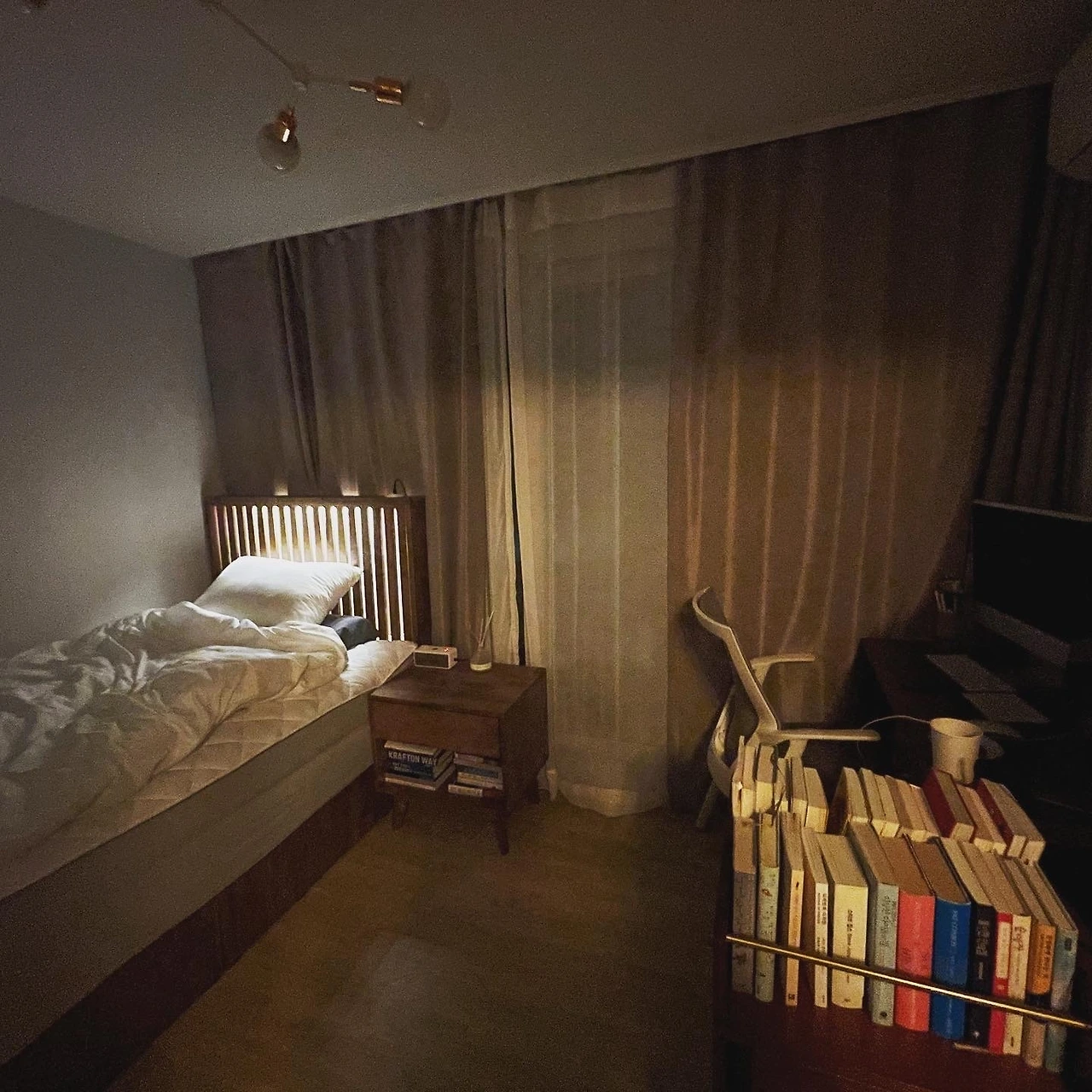 서재겸 아이 장난감 수납 목적으로 쓰던 방을 아이방으로 꾸며주고, 길어지는 재택근무로 어느덧 좁은 공간에 책상까지 들어오자 내 방은 가구를 위한 방이 되어버렸다. 나 혼자 쓰기엔 너무 큰 침대도 볼 때마다 갑갑하여 큰 침대를 빼고 방 구조를 바꿔야겠다 결심했다.