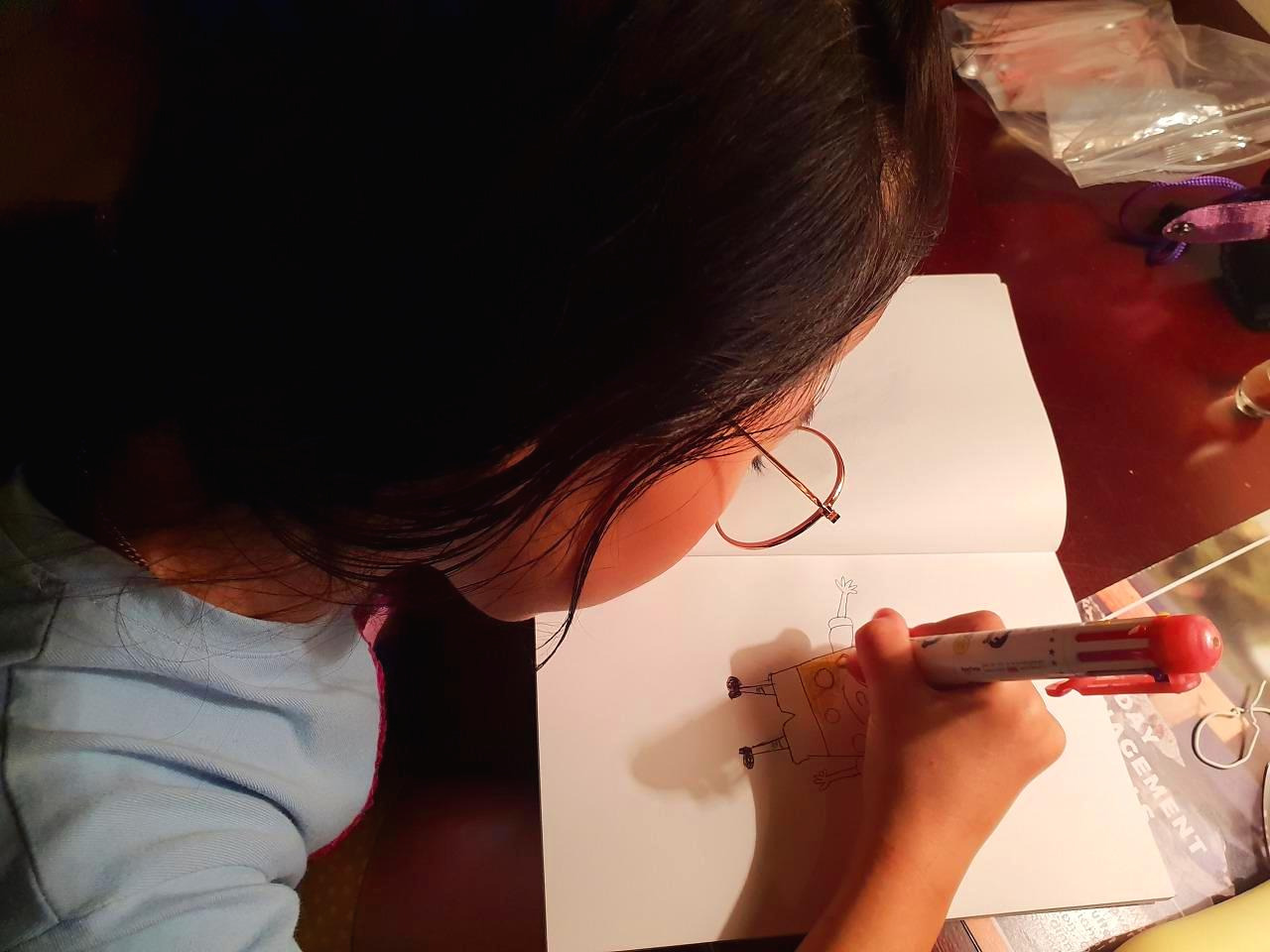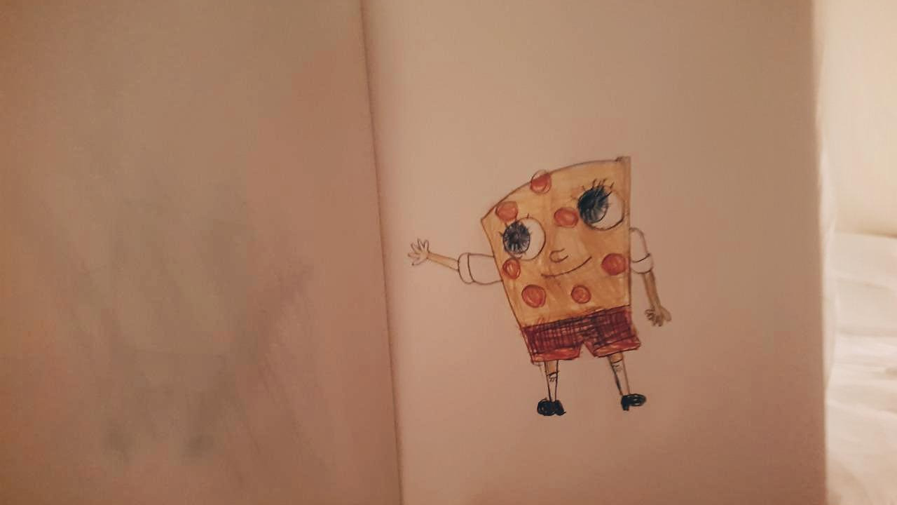 엄마를 기분 좋게 해 주겠다며 내가 가장 좋아하는 스펀지밥을 그려서 보여준다.