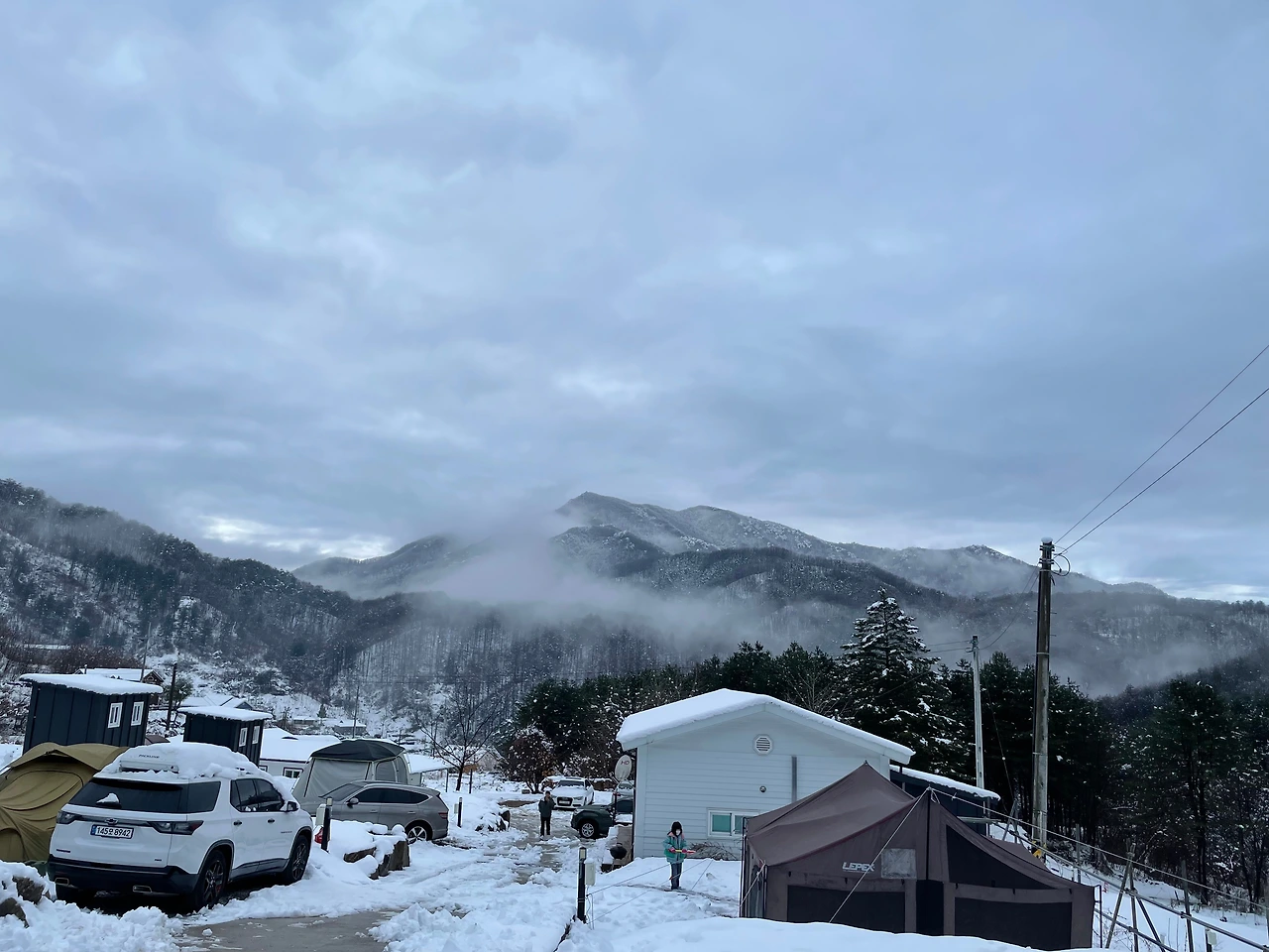 토요일이라 사이트가 꽉 찼다 들었는데, 이 눈을 뚫고 오는 용자 캠퍼가 있을까? 했으나 의외로 하나둘씩 도착하며 사이트가 채워진다. 할 일 없이 가는 차(무사히 잘 가나), 오는 차(무사히 잘 올라오나)만 구경하다 지루해져 나가서 삽으로 눈을 치우고 있을 무렵, 캠핑장에서도 본격적으로 제설작업을 시작했다.